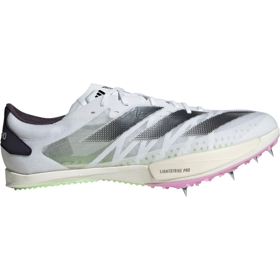 Sprint spikes are best for running short distances of 100m to 400m and hurdle events. Since these distances are typically run at maximal effort, sprint spikes offer almost no cushioning at the heel as sprinters are trained to maintain minimal heel-to-ground contact, and lack of cushioning also helps to provide the lightest possible weight. The spike plate boasts a rigid curved design to keep the athlete’s feet in the correct position for improved power output.