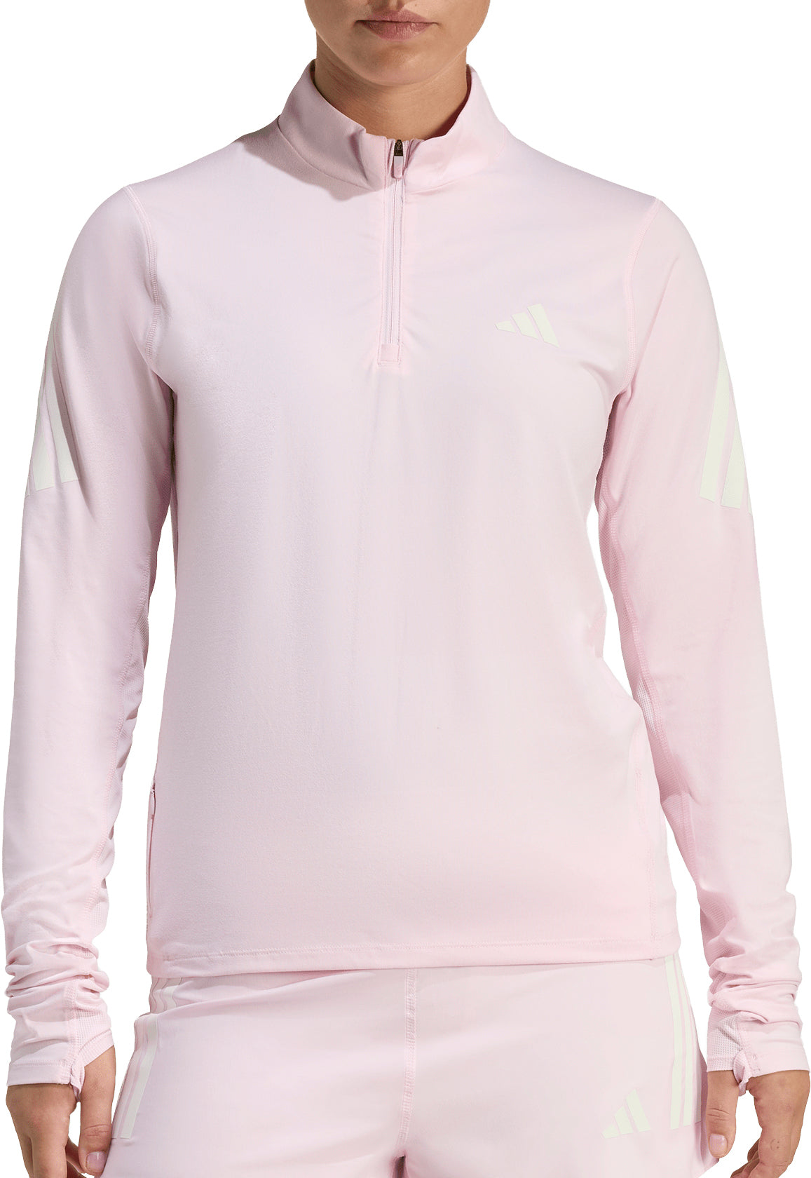 Crafted from soft single jersey, the regular fit allows ease of movement, while the half-zip design makes adjustments simple. Thumbholes add extra coverage, and a zip pocket at the hem keeps essentials close.