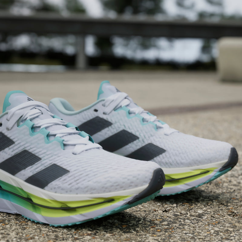 When the day calls for a distance run, answer with a fast, steady pace in these Adistar running shoes from adidas. The dual-density REPETITOR+ midsole delivers an energetic feel to your stride while cradling the heel for extra support across the kilometres. Lightstrike Pro provides super-light cushioning underfoot to keep you going strong over the long haul. A Continental™ Rubber outsole offers confident traction on wet and dry surfaces so you can push for a personal record in any conditions.