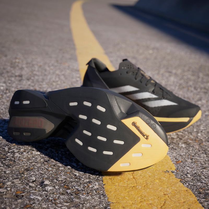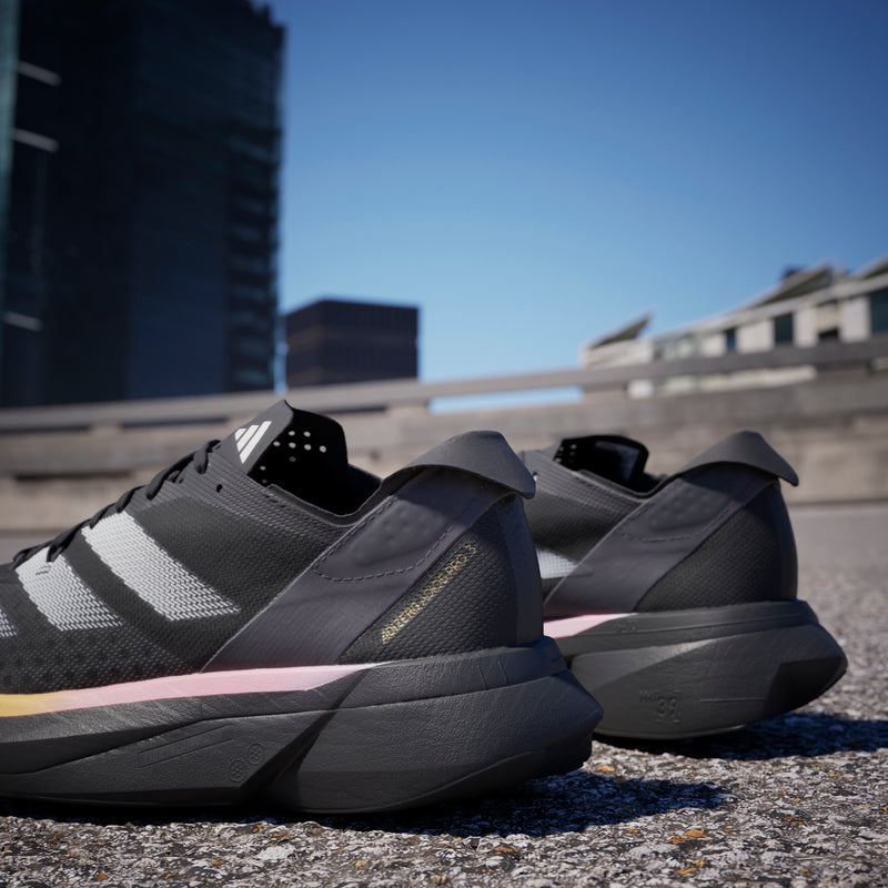 The Adizero Adios Pro 3 is the pinnacle of Adizero Racing products. It was built with and for athletes to achieve unbelievable feats. These adidas running shoes are made to optimize running efficiency. Our carbon-infused ENERGYRODS 2.0 provide lightweight stiffness for a snappy, efficient stride. Ultralight LIGHTSTRIKE PRO cushions every step with two layers of our most resilient foam to help you maintain energy over the long term. It all rides on a thin layer of textile rubber outsole for extraordinary traction in wet and dry conditions.