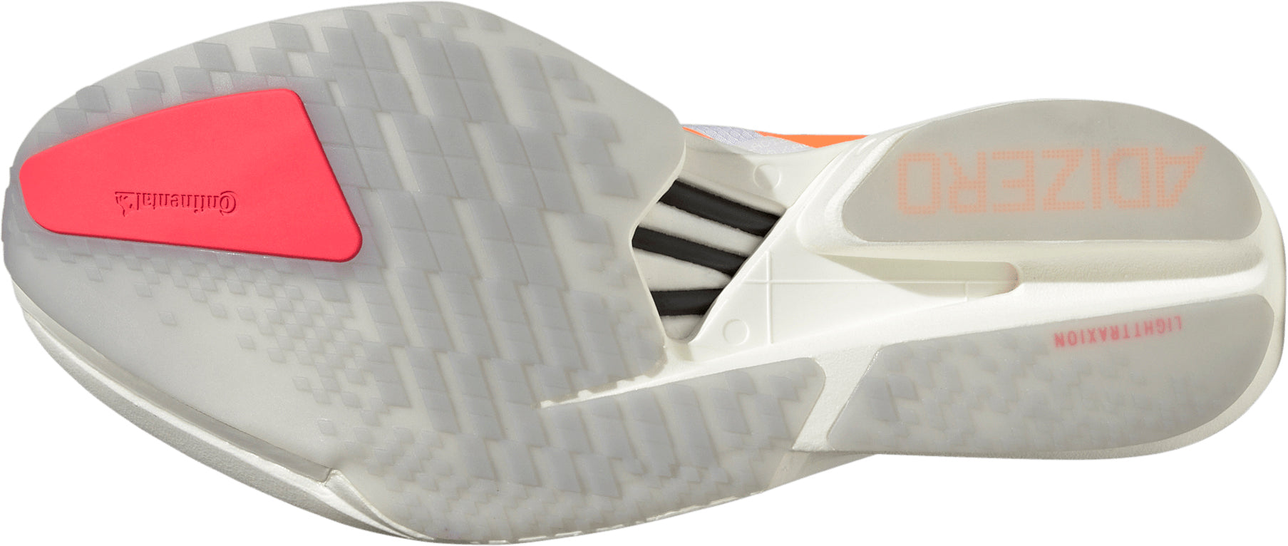 Proven to be the world's most winning shoe, the Adizero Adios Pro line is the pinnacle of Adizero Racing shoes. The Adios Pro 4 is made for fast runners who want to experience faster, with enhanced features designed to optimize running efficiency. Our carbon-infused ENERGYRODS 2.0 provide a seamless transition from heel to toe for a snappy, efficient stride. In the midsole, a new rocker point offers improved running economy. A double layer of our best-in-class ultralight LIGHTSTRIKE PRO ensures cushioning for every quick stride you take, helping you maintain energy over the long term. The shoe rides on an outsole built with Continental™ rubber for a no-slip transition during toe-off, as well as LIGHTTRAXION, designed to reduce weight without sacrificing grip.