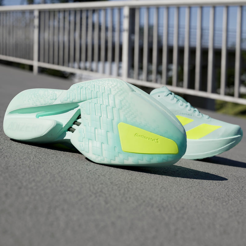 Proven to be the world's most winning shoe, the Adizero Adios Pro line is the pinnacle of Adizero Racing shoes. The Adios Pro 4 is made for fast runners who want to experience faster, with enhanced features designed to optimize running efficiency. Our carbon-infused ENERGYRODS 2.0 provide a seamless transition from heel to toe for a snappy, efficient stride. In the midsole, a new rocker point offers improved running economy. A double layer of our best-in-class ultralight LIGHTSTRIKE PRO ensures cushioning for every quick stride you take, helping you maintain energy over the long term. The shoe rides on an outsole built with Continental™ rubber for a no-slip transition during toe-off, as well as LIGHTTRAXION, designed to reduce weight without sacrificing grip.