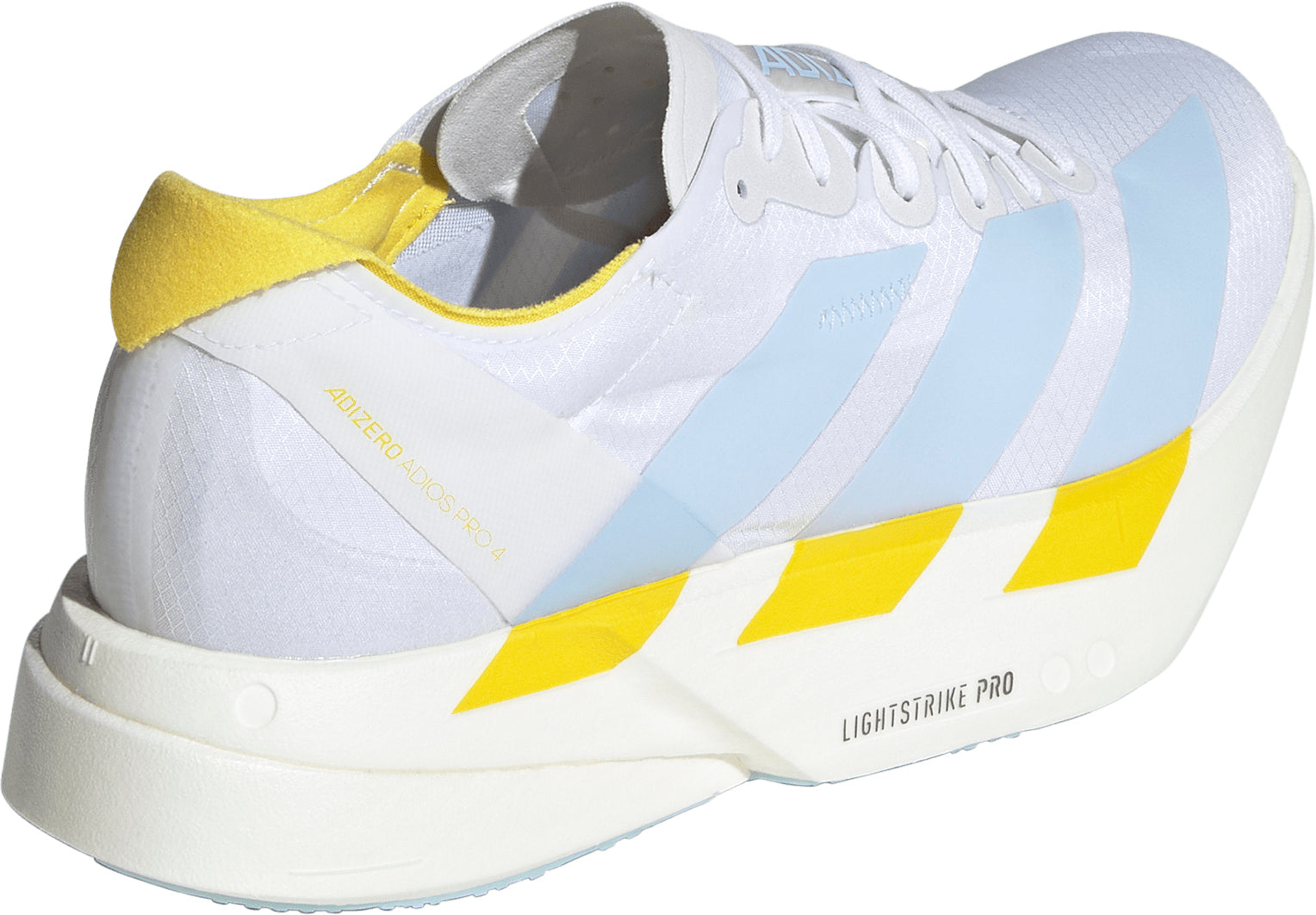 Proven to be the world's most winning shoe, the Adizero Adios Pro line is the pinnacle of Adizero Racing shoes. The Adios Pro 4 is made for fast runners who want to experience faster, with enhanced features designed to optimize running efficiency. Our carbon-infused ENERGYRODS 2.0 provide a seamless transition from heel to toe for a snappy, efficient stride. In the midsole, a new rocker point offers improved running economy. A double layer of our best-in-class ultralight LIGHTSTRIKE PRO ensures cushioning for every quick stride you take, helping you maintain energy over the long term. The shoe rides on an outsole built with Continental™ rubber for a no-slip transition during toe-off, as well as LIGHTTRAXION, designed to reduce weight without sacrificing grip.