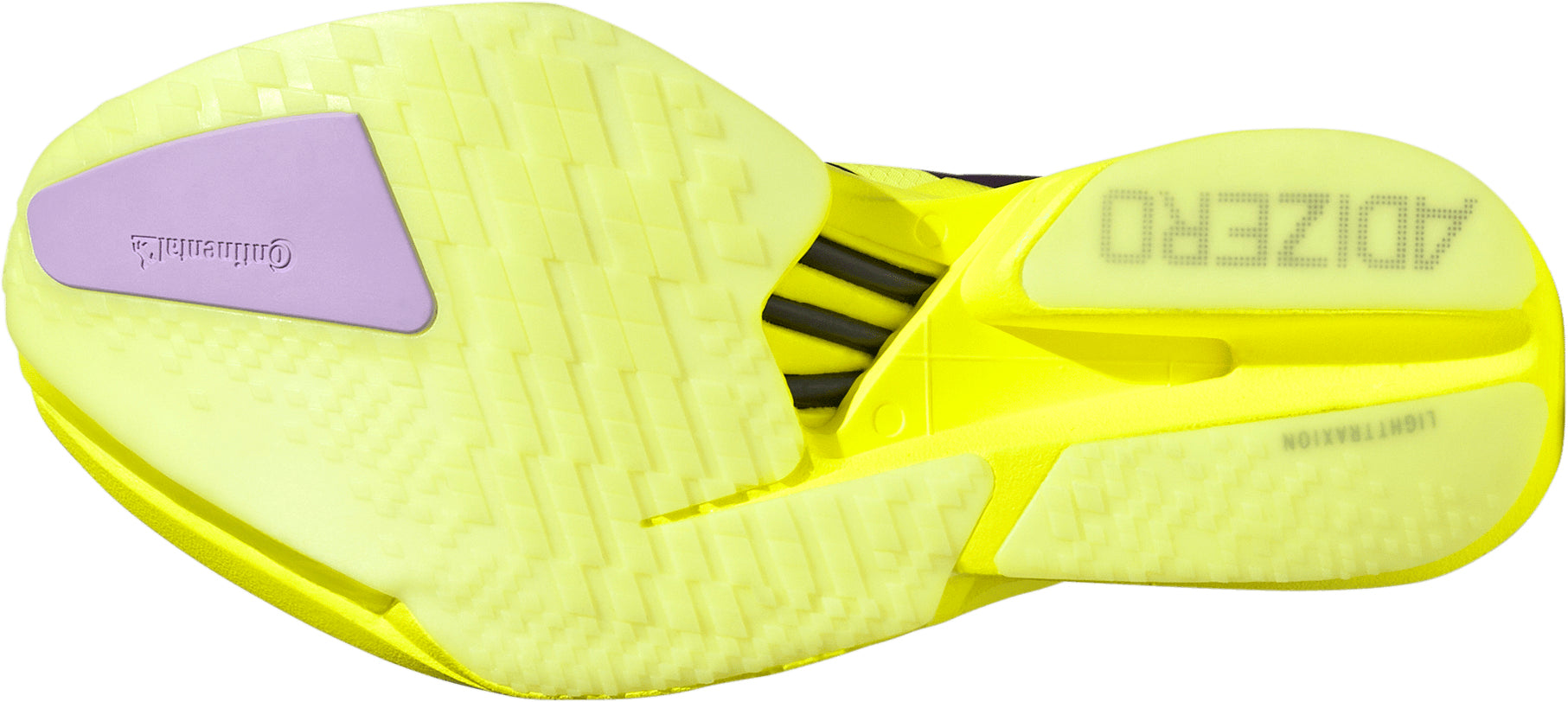 Proven to be the world's most winning shoe, the Adizero Adios Pro line is the pinnacle of Adizero Racing shoes. The Adios Pro 4 is made for fast runners who want to experience faster, with enhanced features designed to optimize running efficiency. Our carbon-infused ENERGYRODS 2.0 provide a seamless transition from heel to toe for a snappy, efficient stride. In the midsole, a new rocker point offers improved running economy. A double layer of our best-in-class ultralight LIGHTSTRIKE PRO ensures cushioning for every quick stride you take, helping you maintain energy over the long term. The shoe rides on an outsole built with Continental™ rubber for a no-slip transition during toe-off, as well as LIGHTTRAXION, designed to reduce weight without sacrificing grip.