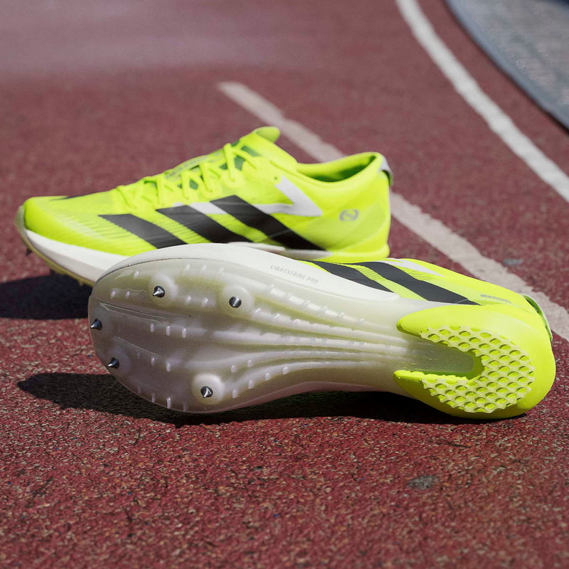 Ready to fly as soon as the gun goes off, these middle-distance running shoes from adidas propel you toward the finish line. They're tuned for speed with a Lightstrike Pro midsole. The breathable upper offers a barely-there feel and a locked-down fit.