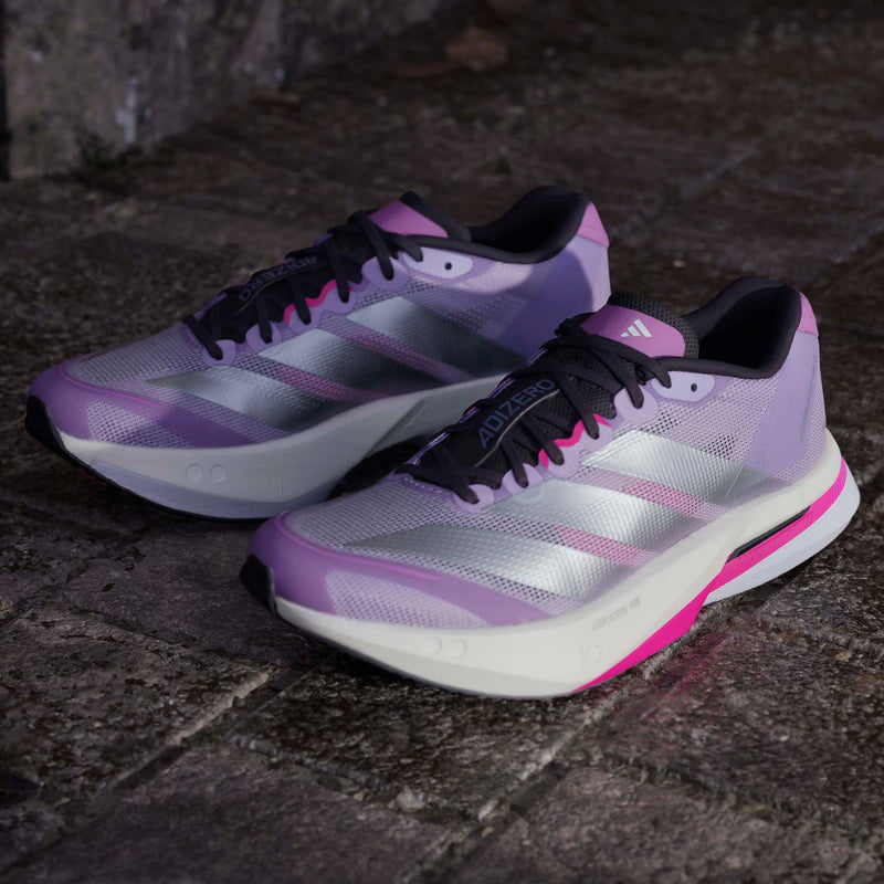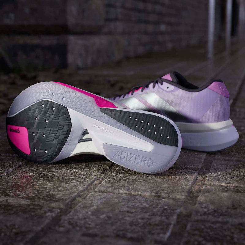 Tune into your fastest self with the lightweight, responsive performance of the adidas Adizero Boston 13 running shoes. Designed for the intense training sessions leading up to race day, they let you comfortably push the pace with a breathable mesh upper and secure midfoot lockdown. The Lightstrike and Lightstrike Pro midsole with ENERGYRODS provides snappy return kilometre after kilometre. A Lighttraxion outsole adds all-purpose traction while Continental™ Rubber at the toe adds no-slip toe-off.