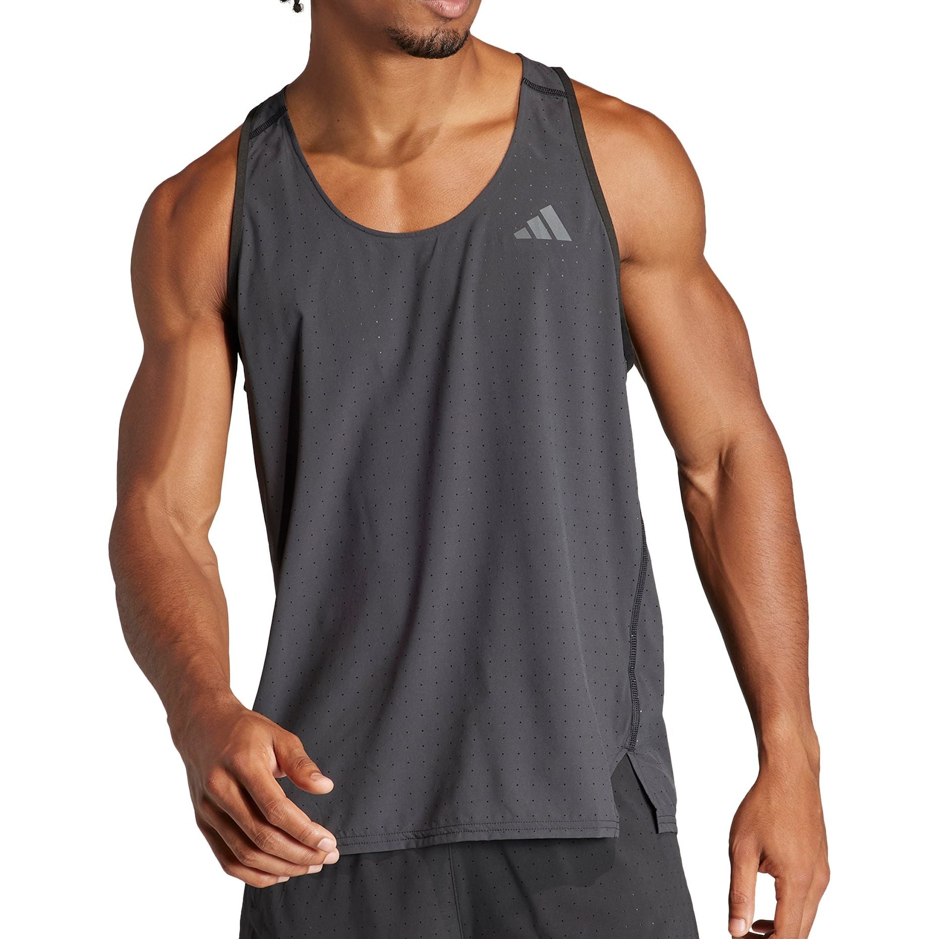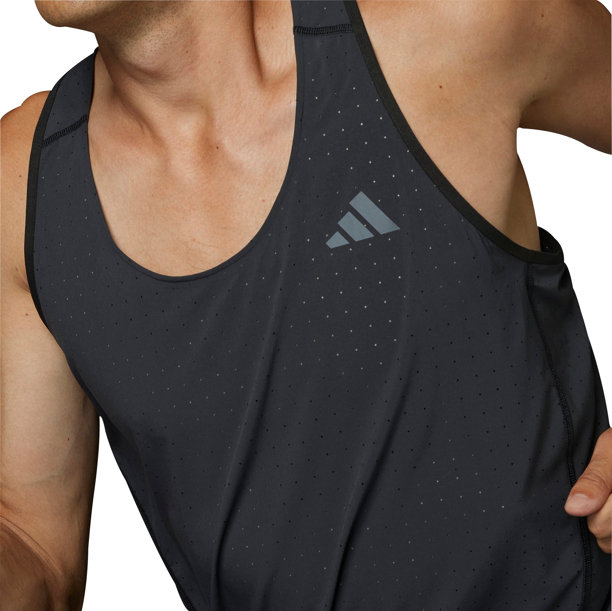 The Adizero Running Singlet is made to power you in any situation, delivering the perfect combination of total focus and comfort. Crafted from breathable, super lightweight materials and sweat wicking AEROREADY, it keeps you fresh and dry throughout your runs. The inclusion of a reflective logo adds a dash of running style while making you visible, even in dim light conditions. Approach the finish line unhindered with this essential race day garment.