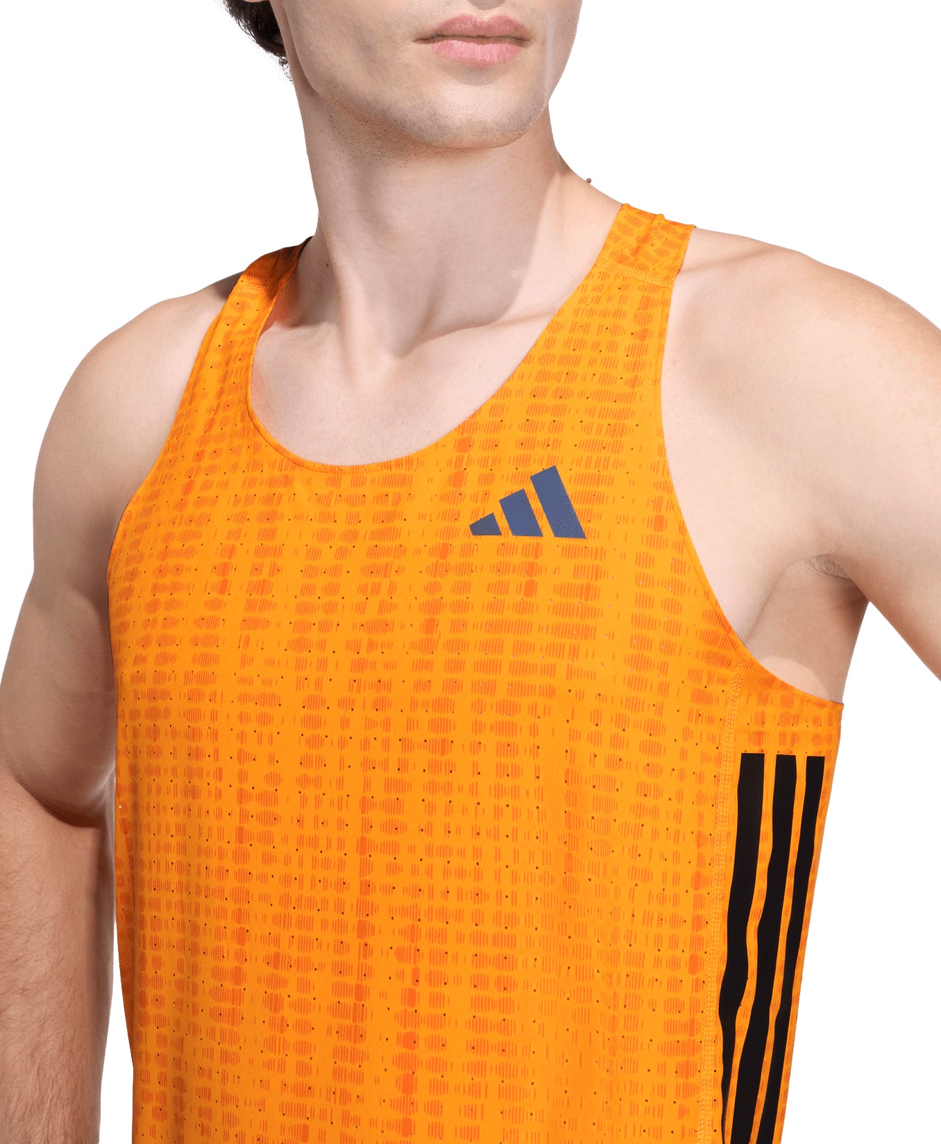 Set your sights on the impossible. Run towards it. Whether setting a PR or completing your first marathon, this ultra-light adidas running singlet offers distraction-free performance to help you achieve your goals. It fits slim for a barely-there feel and has perforations to keep air circulating. The side seams are shifted forward and abrasion points are taped over to reduce chafing and friction.