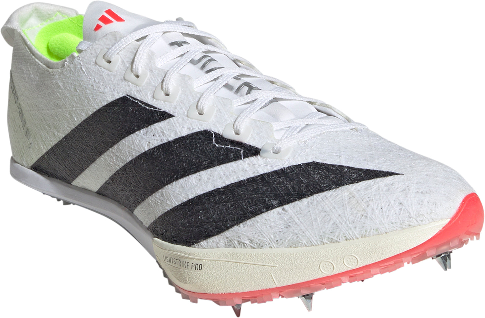 When fractions of a second matter, make sure you're in shoes that match your speed. These Adizero running spikes from adidas feature Lightstrike Pro underfoot to give you super-light cushioning plus energy-return for next-level speed. The full-length spike plate with six pins delivers optimal bite to get you to the finish line fast.