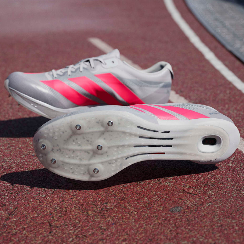 Are you ready to run your fastest 100-metre race? These adidas track and field spikes are tuned to help you crush short distances with an ultra-lightweight mesh upper that keeps air flowing for distraction-free comfort. Underfoot, responsive Lightstrike Pro cushioning is paired with a speed-wedge construction and aggressive sprint plate to help you explode off the line and maintain top speed all the way through the finish.