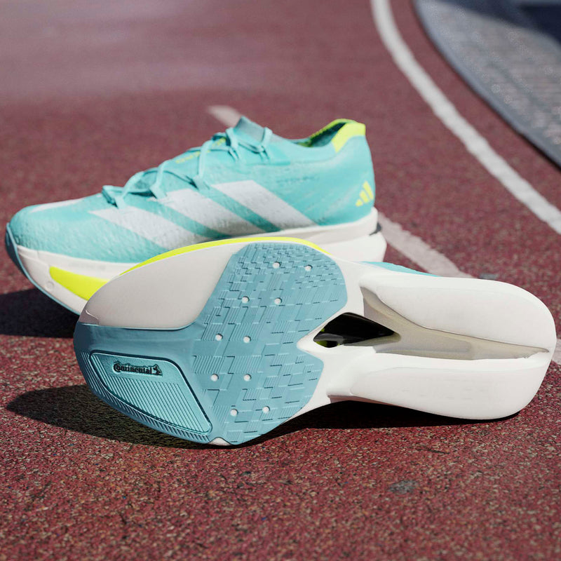 Tap into speed and push past your limits in these high-performance shoes. The adidas Adizero Prime X3 Strung Running Shoes pair innovative technologies to create a lightweight, cushioned race shoe for chasing your personal best. A tuned Strung upper supports the foot, and the three-layer Lightstrike midsole maximises comfort. A top carbon plate paired with carbon fibre-infused ENERGYRODS 2.0.0 fuels every stride with forward energy while reducing weight for chasing speed. Continental™ Rubber at the toe increases grip at toe-off.