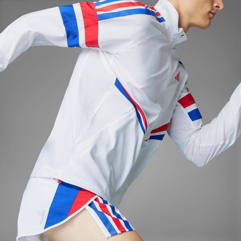 Whether you're training for a 5K or striving for a new marathon PR, this adidas running jacket is down for the journey. It has all the performance features you need to push yourself, from water repellency that shrugs off misty weather to perforated panels that provide airflow. As you run towards finish lines and personal goals, the retro style keeps you connected to decades of running glory.