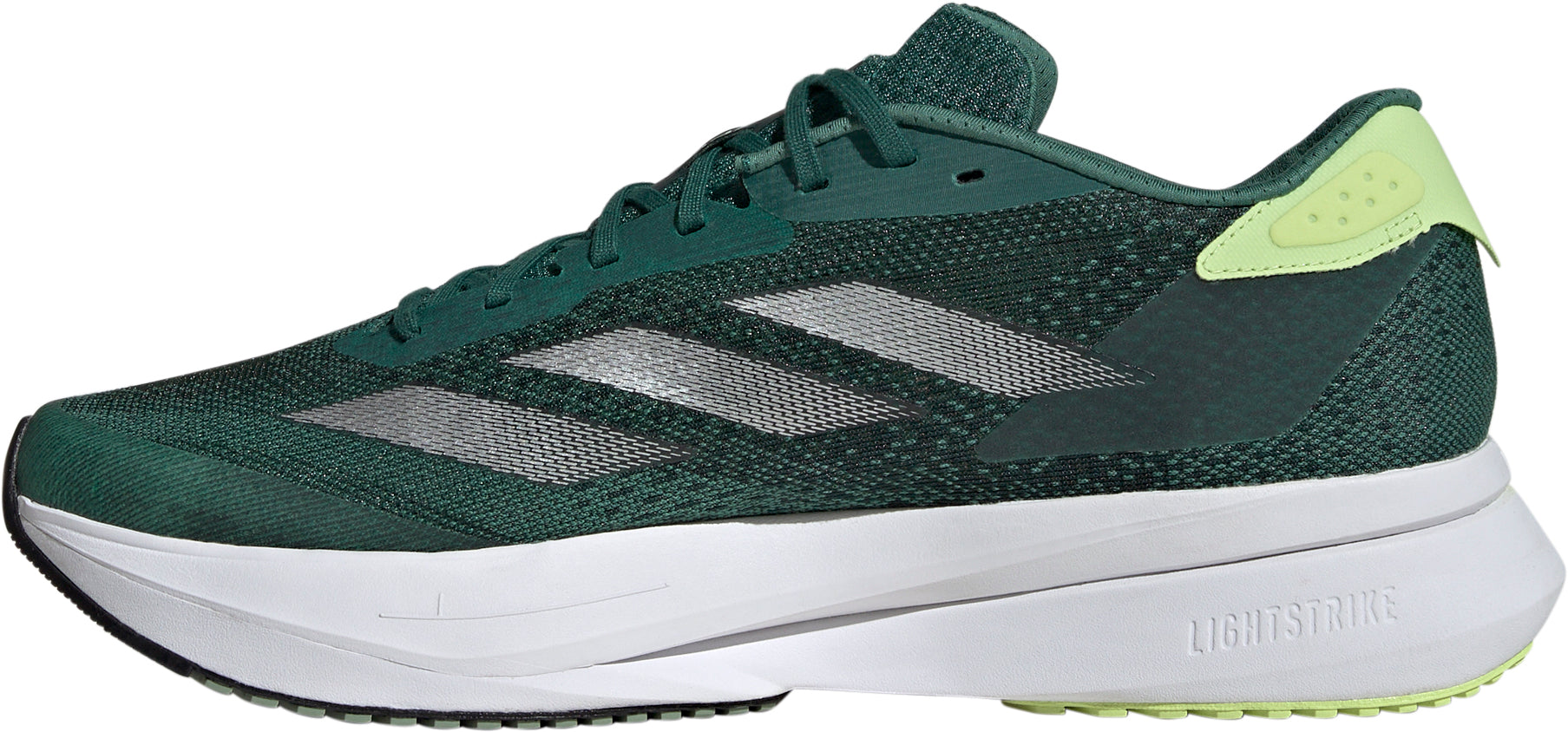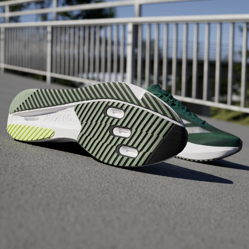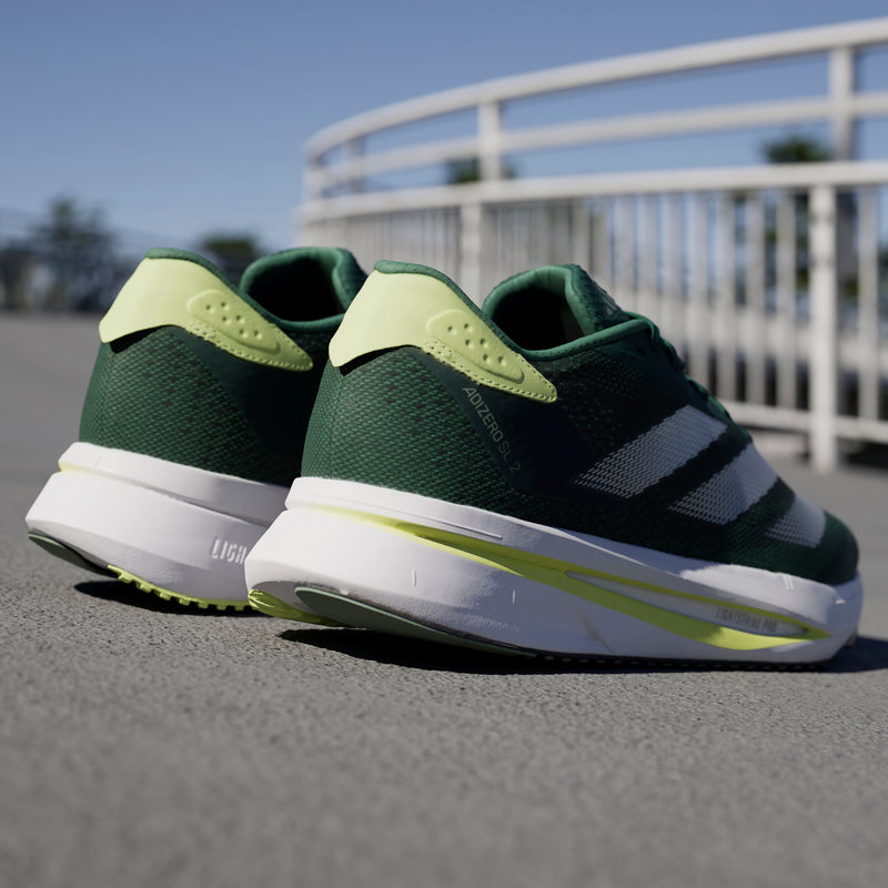Experience the thrill of breaking personal records in a shoe that's as fast as you are. These adidas Adizero running shoes are equipped with responsive Lightstrike Pro, super-light cushioning that delivers energy return for next-level speed. The engineered mesh upper provides breathability and targeted support where you need it most to keep you flying to the finish.