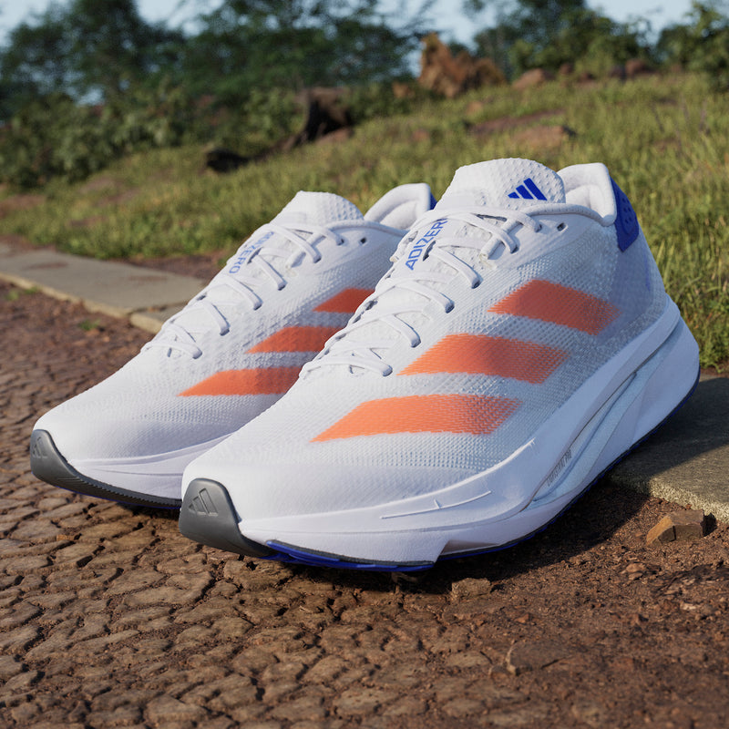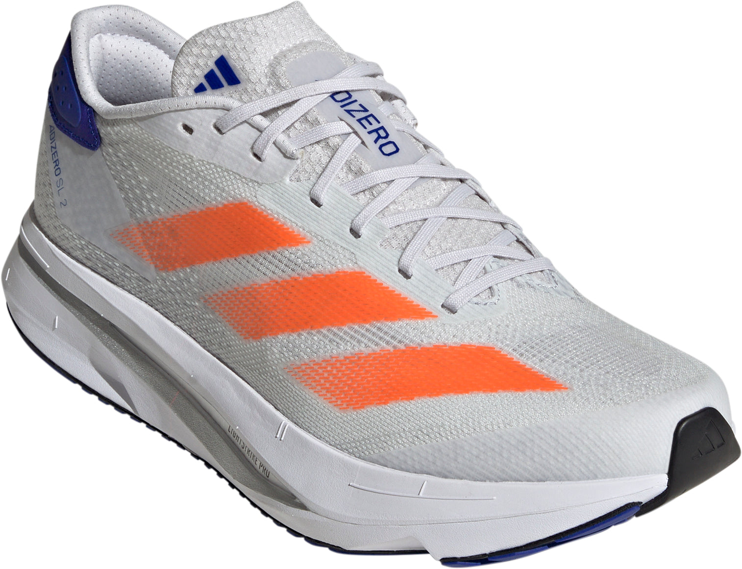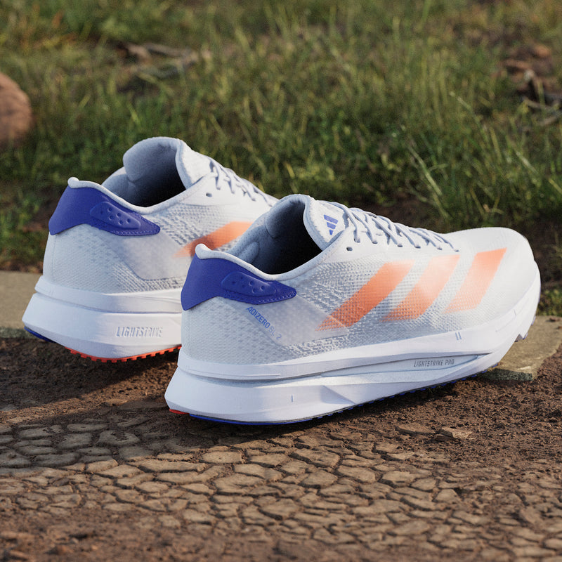 Experience the thrill of breaking personal records in a shoe that's as fast as you are. These adidas Adizero running shoes are equipped with responsive Lightstrike Pro, super-light cushioning that delivers energy return for next-level speed. The engineered mesh upper provides breathability and targeted support where you need it most to keep you flying to the finish.
