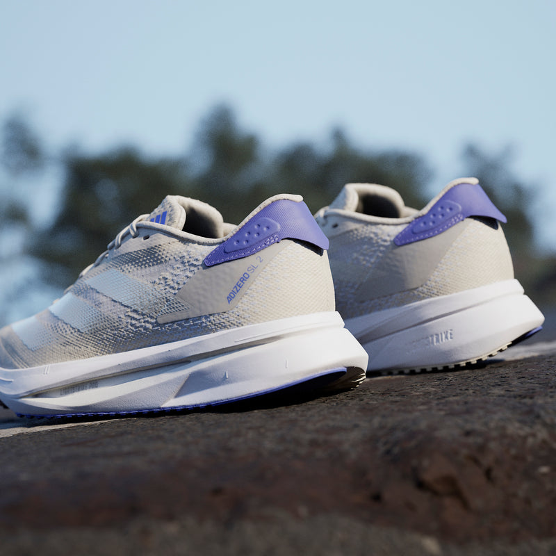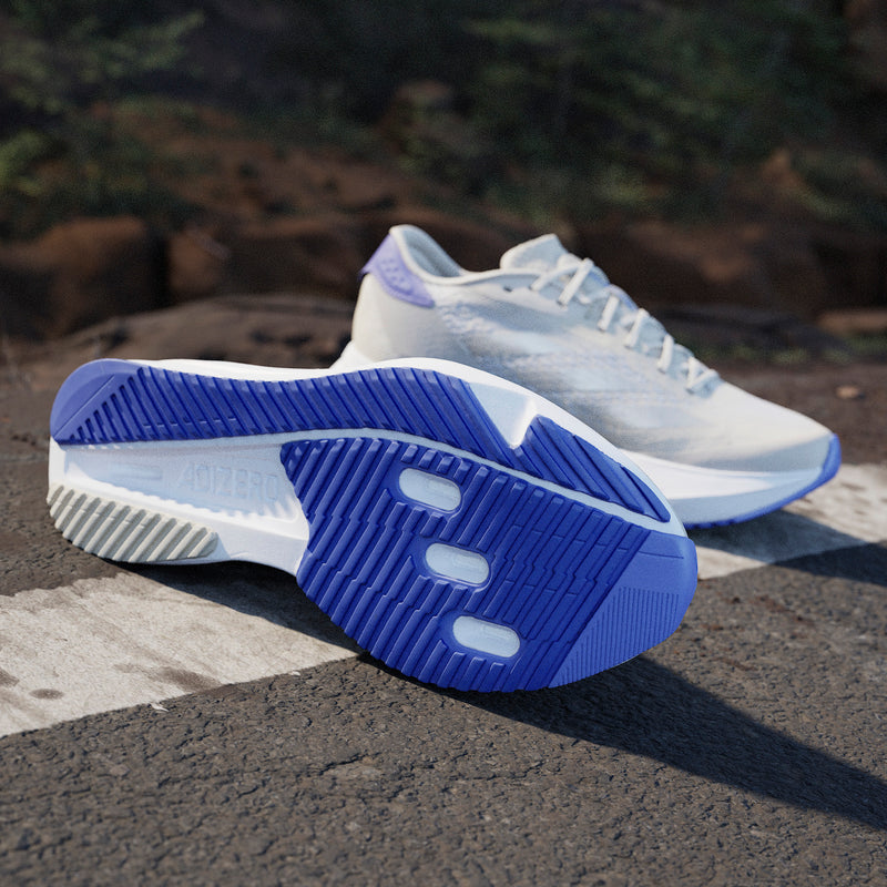 Experience the thrill of breaking personal records in a shoe that's as fast as you are. These adidas Adizero running shoes are equipped with responsive Lightstrike Pro, super-light cushioning that delivers energy return for next-level speed. The engineered mesh upper provides breathability and targeted support where you need it most to keep you flying to the finish.