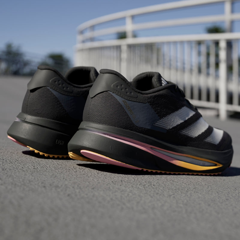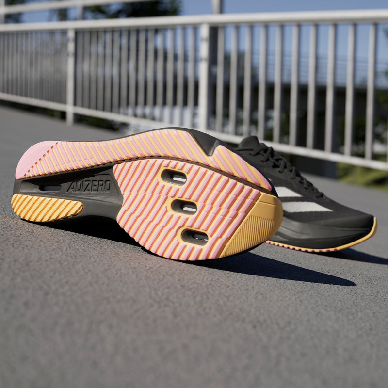 Experience the thrill of breaking personal records in a shoe that's as fast as you are. These adidas Adizero running shoes are equipped with responsive Lightstrike Pro, super-light cushioning that delivers energy return for next-level speed. The engineered mesh upper provides breathability and targeted support where you need it most to keep you flying to the finish.