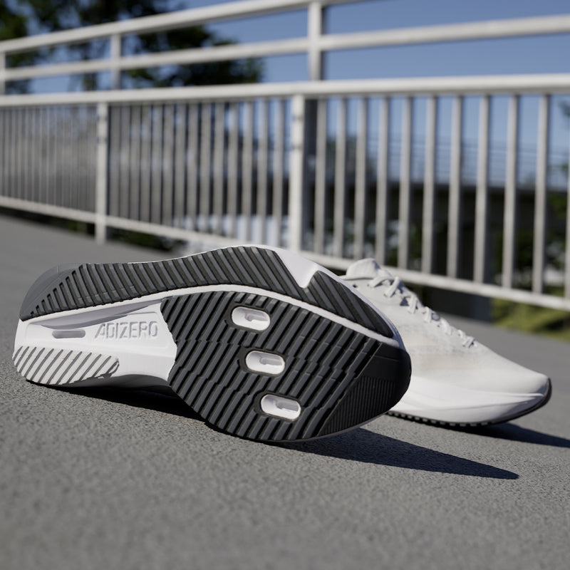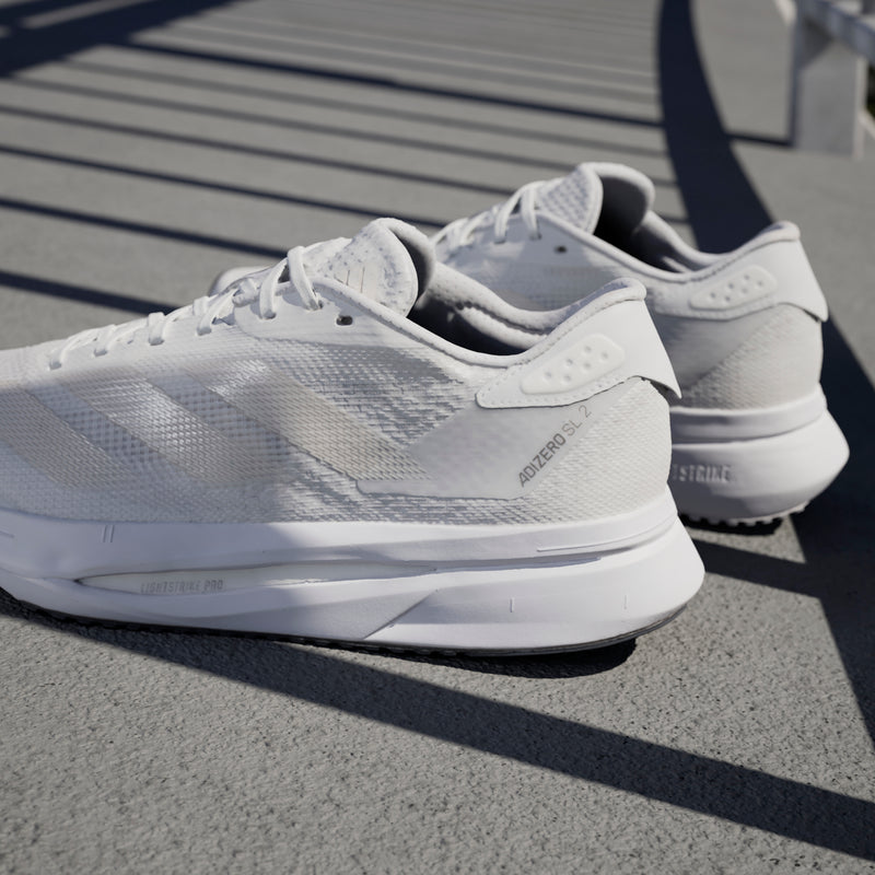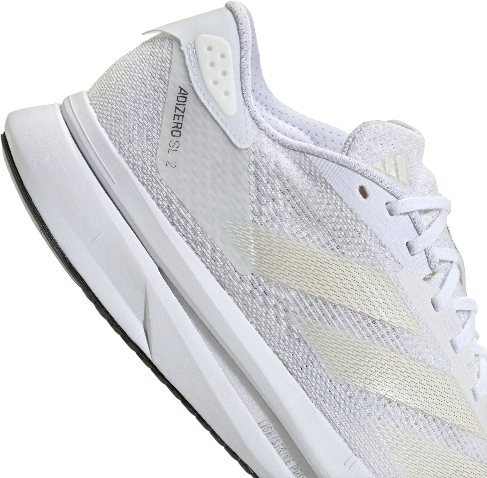 Experience the thrill of breaking personal records in a shoe that's as fast as you are. These adidas Adizero running shoes are equipped with responsive Lightstrike Pro, super-light cushioning that delivers energy return for next-level speed. The engineered mesh upper provides breathability and targeted support where you need it most to keep you flying to the finish.