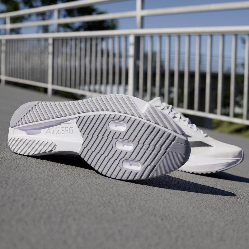 Experience the thrill of breaking personal records in a shoe that's as fast as you are. These adidas Adizero running shoes are equipped with responsive Lightstrike Pro, super-light cushioning that delivers energy return for next-level speed. The engineered mesh upper provides breathability and targeted support where you need it most to keep you flying to the finish.
