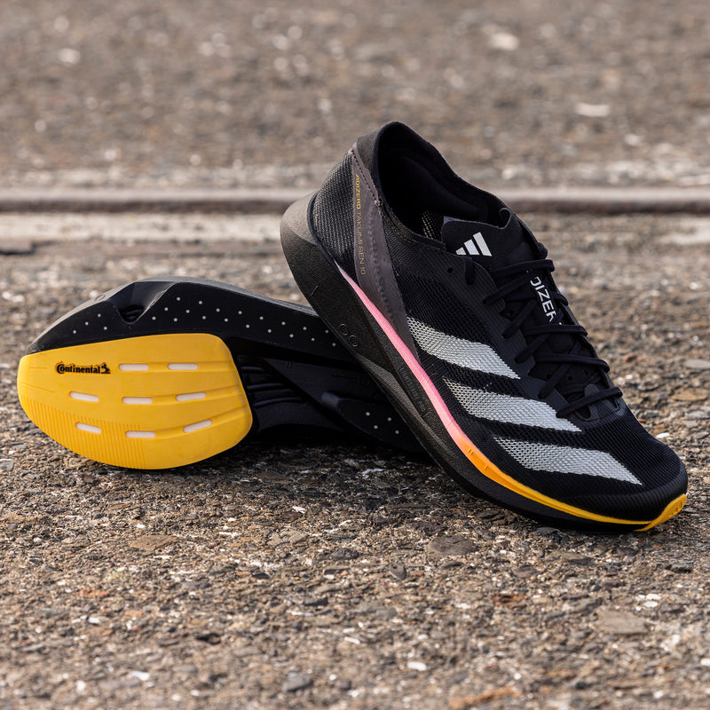 Chase your fastest 10k in our latest Adizero racing shoes, built exclusively for speed. The Adizero Takumi Sen 10 have been designed with two layers of LIGHTSTRIKE PRO cushioning, combined with ENERGYRODS for stiff and snappy toe-offs as you transition from corners to straights. Get to the finish line in your fastest time yet.