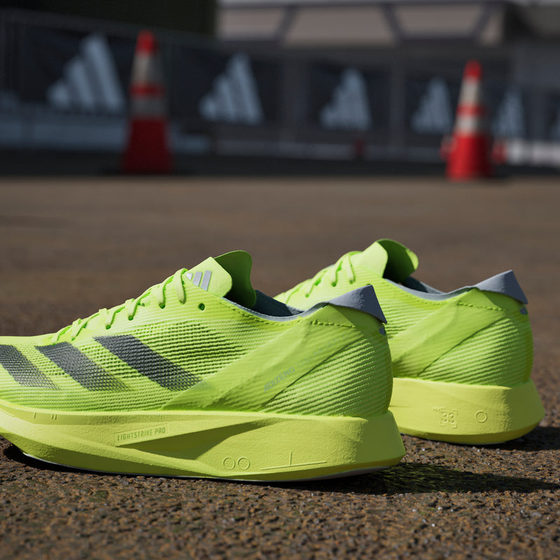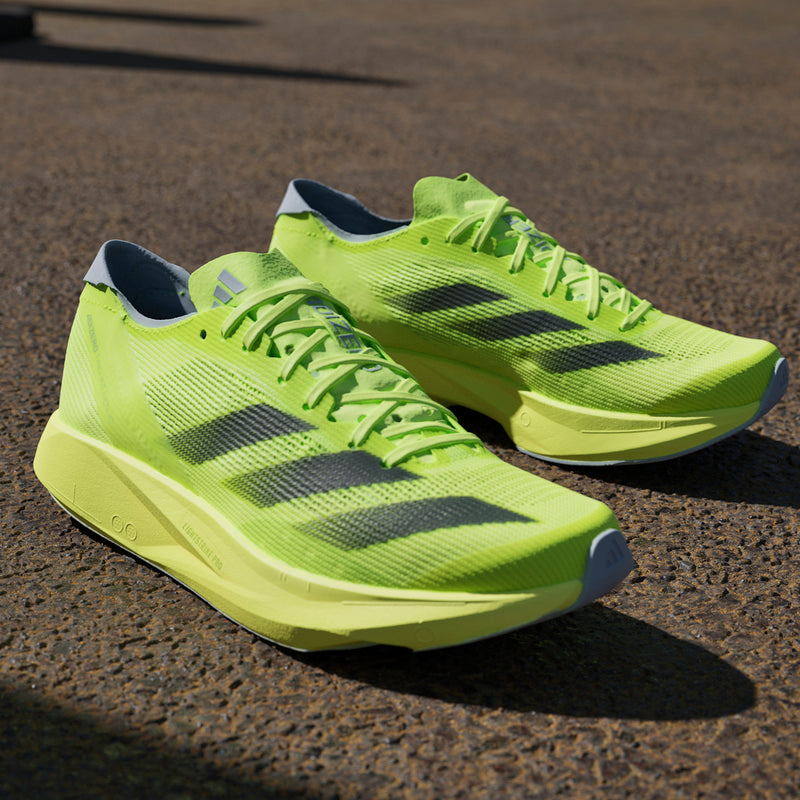 Chase your fastest 10k in our latest Adizero racing shoes, built exclusively for speed. The Adizero Takumi Sen 10 have been designed with two layers of LIGHTSTRIKE PRO cushioning, combined with ENERGYRODS for stiff and snappy toe-offs as you transition from corners to straights. Get to the finish line in your fastest time yet.
