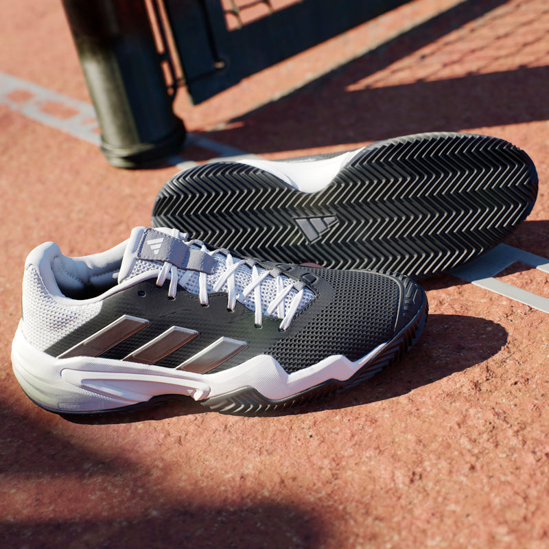Take control of your game in the latest adidas Barricade tennis shoes. Built for stability, they include an engineered TPU shank that helps you control slides and sidesteps and a form-fitting Geofit collar for solid heel lockdown. Keeping you cool under pressure, the breathable mesh upper sits on a lightweight REPETITOR+ midsole and grippy Adiwear outsole that help you go all-out on clay.
