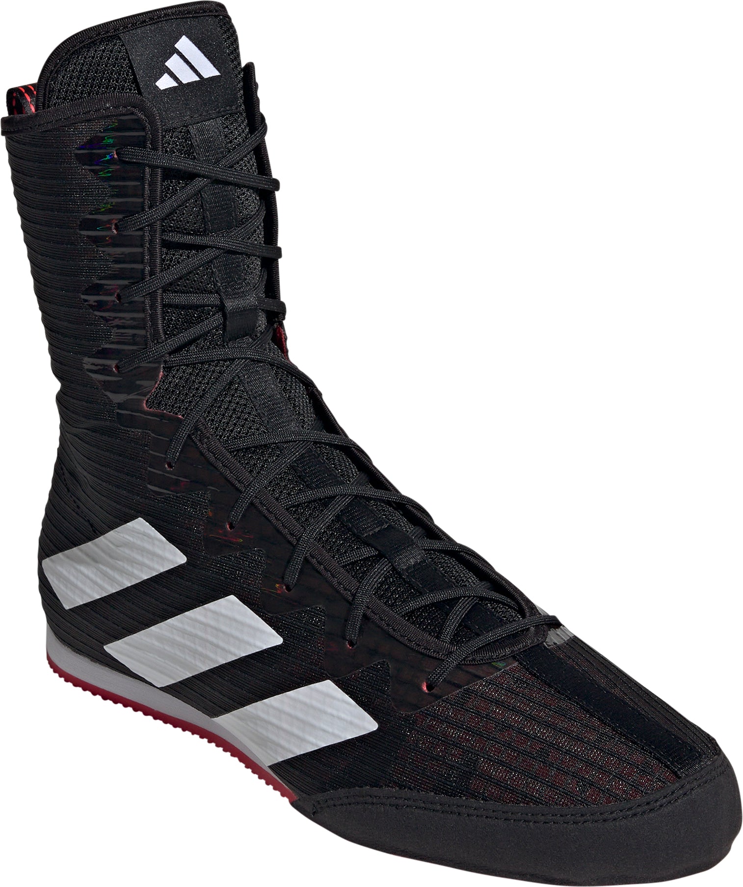 Tried and trusted. No stranger to the gym or the ring, adidas Box Hog boxing shoes keep your intensity high thanks to their breathable mesh upper and inner reinforcements. A die-cut EVA midsole wedge supports your midfoot for a stable stance. Underneath, the multidirectional outsole grips the mat for lightning-quick footwork.