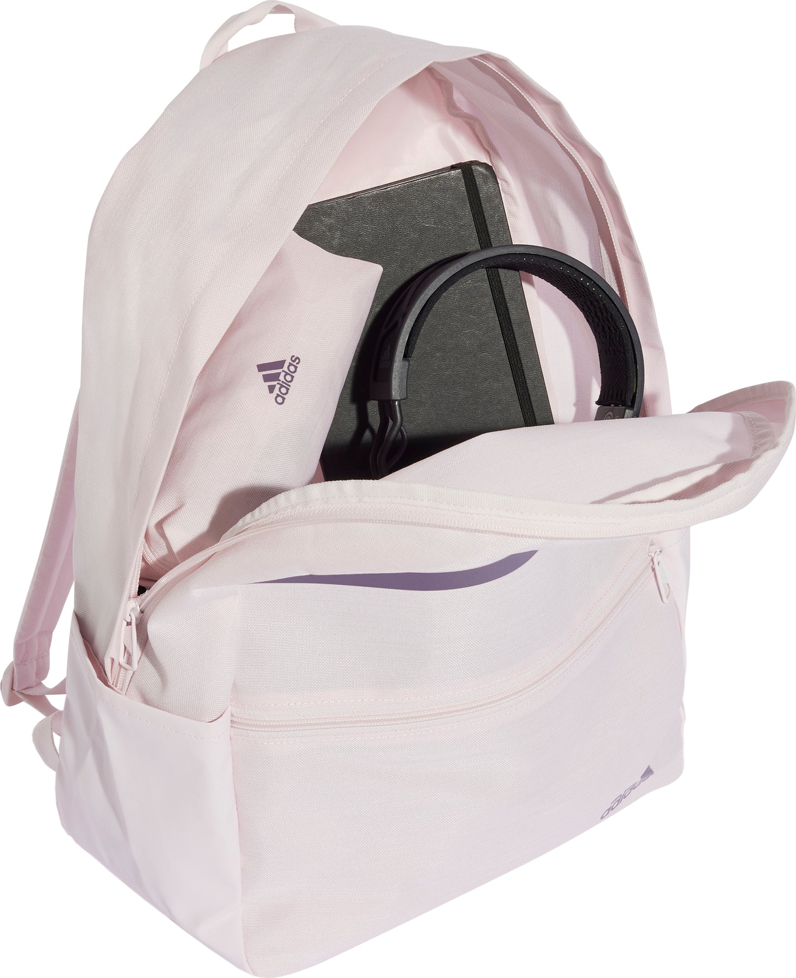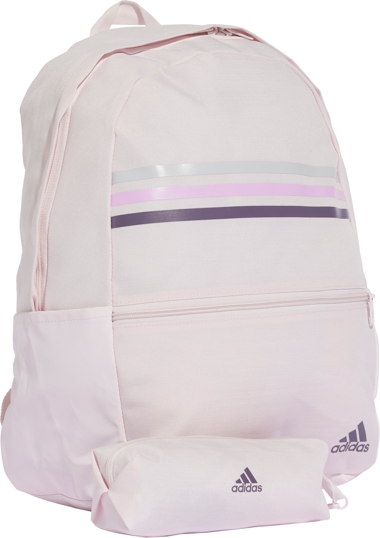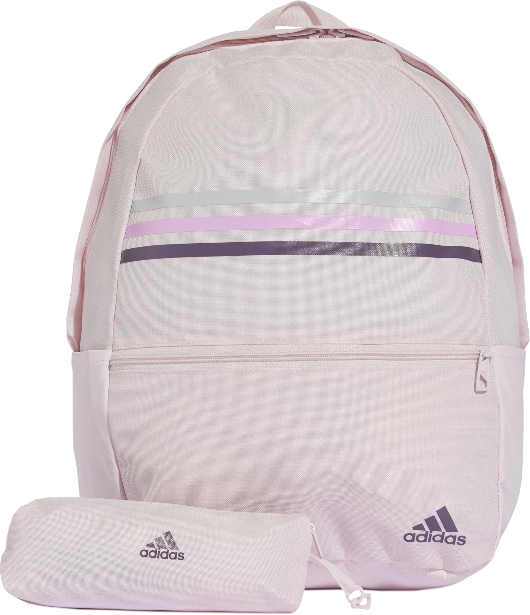 Classic 3-Stripes in gradient colours give this adidas backpack standout style. Stay organised with all the pockets you need, including one on the front and one on each side. The coated bottom ensures it stands up to daily use, and adjustable shoulder straps make comfort a priority. The coordinating pencil case zips for easy access to writing utensils or other small essentials.