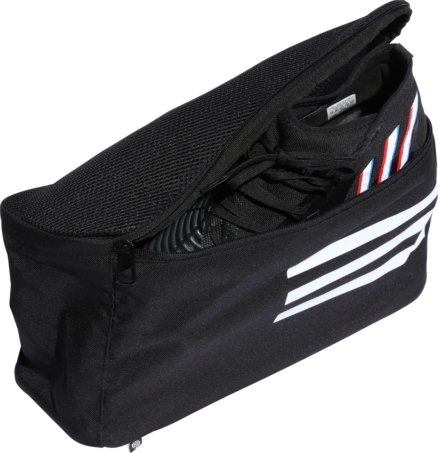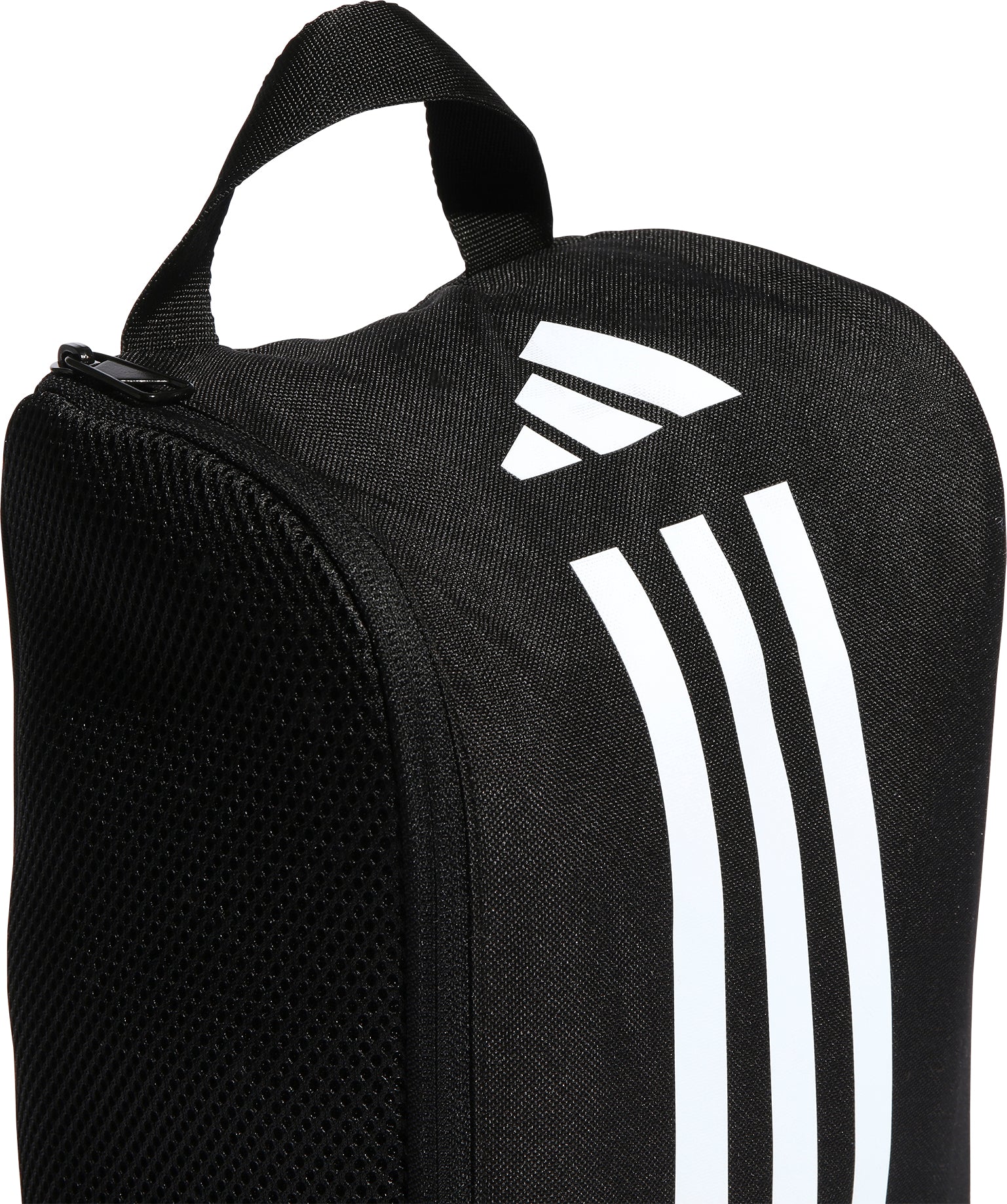 Protect your footwear like a pro with this adidas training shoe bag. Built to last, it features a breathable mesh side panel to keep air flowing. The zip main compartment offers plenty of room, while the carry handle gets you to the gym or practise field with ease. Bold 3-Stripes add sporty style.