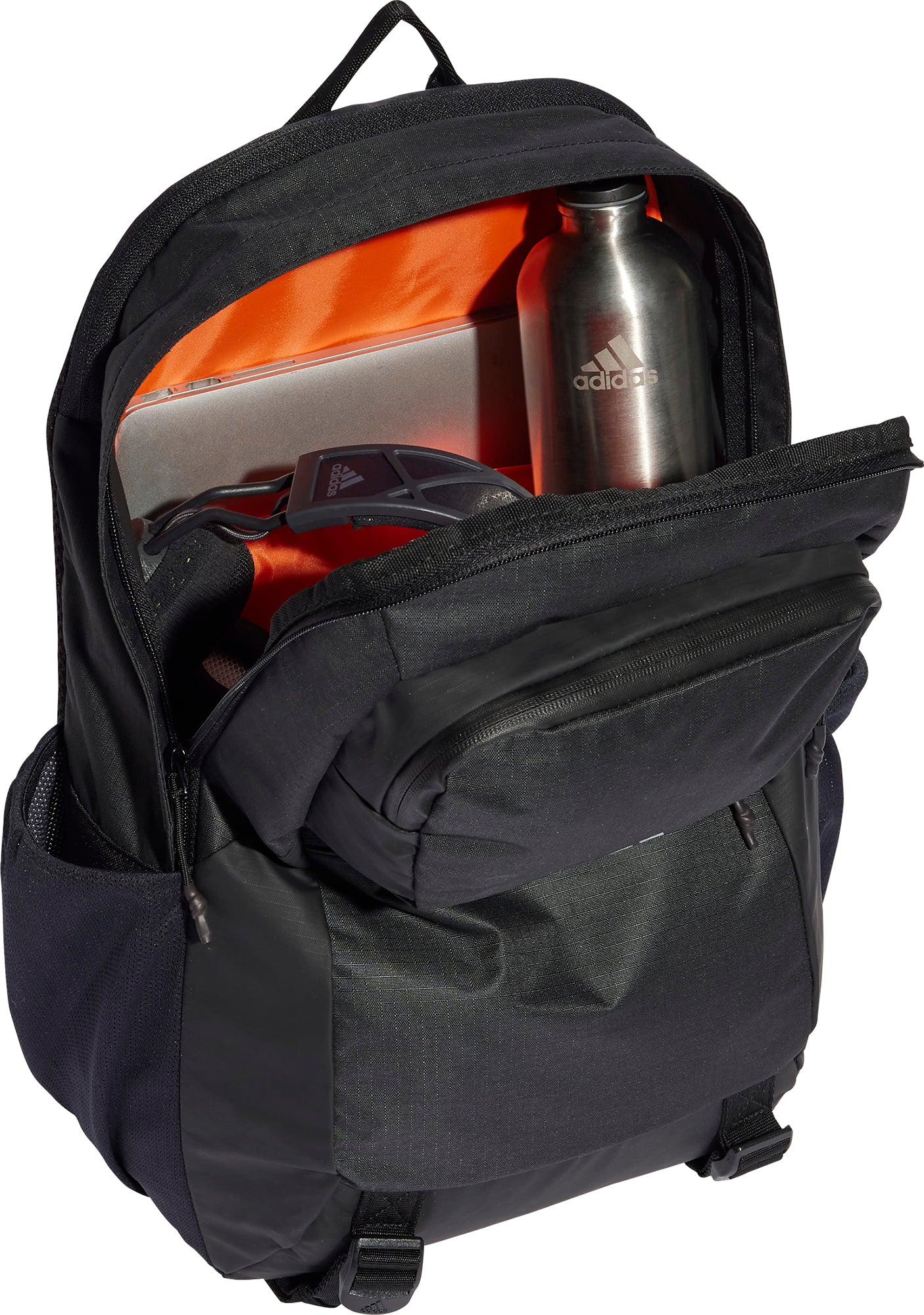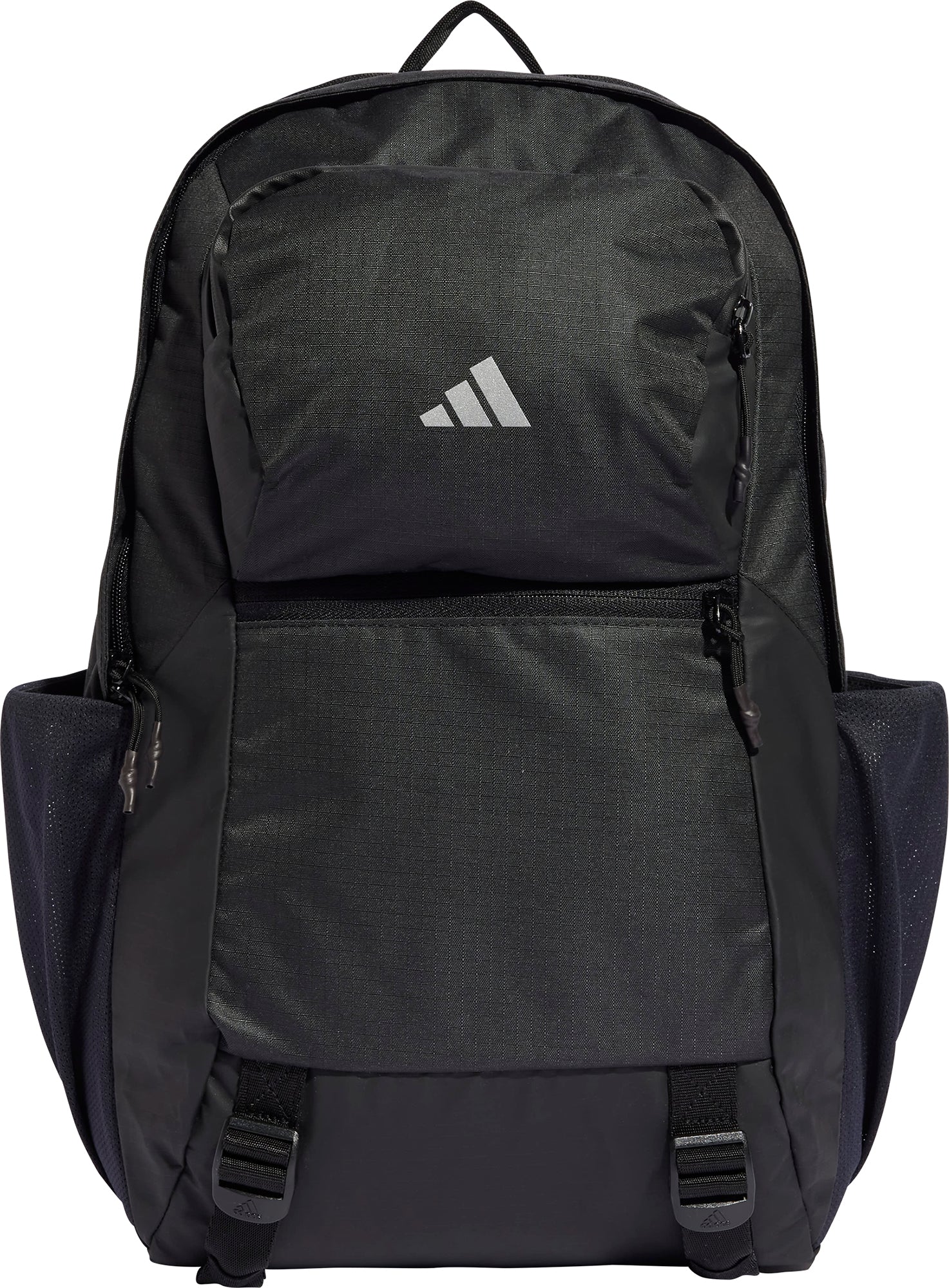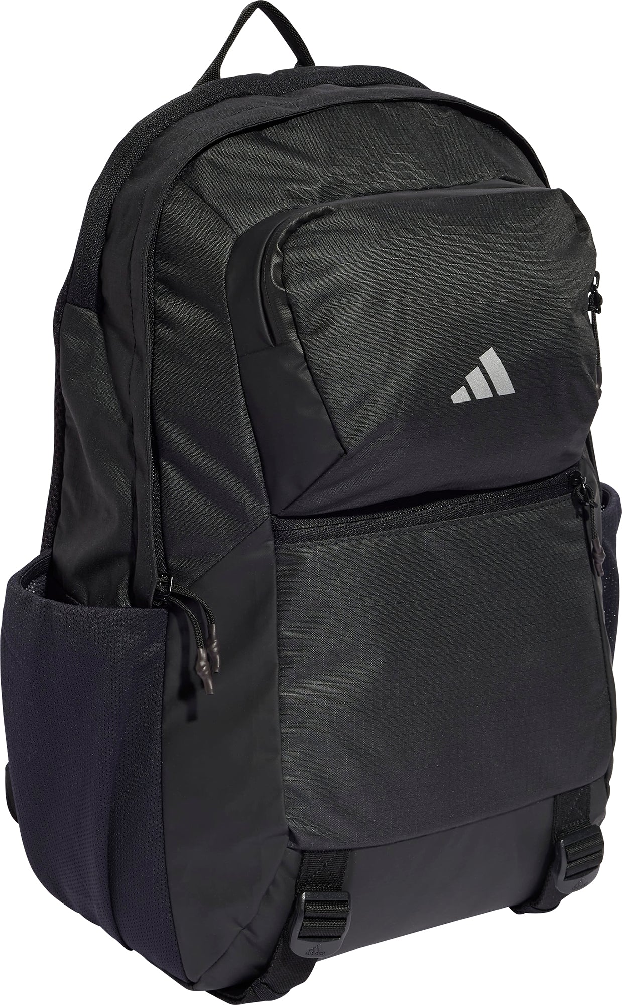 Your office away from the office. This sleek yet rugged adidas backpack makes easy work of your urban commutes or business trips. Multiple pockets, including a padded laptop sleeve keep you organised on the go. Made from durable recycled polyester ripstop, it's built to handle the daily grind. Reflective details help you stand out in low light, while mesh padding and adjustable straps ensure carrying comfort. With room for essentials and extras, this intelligent packing system has your back when you're heading out into the world.