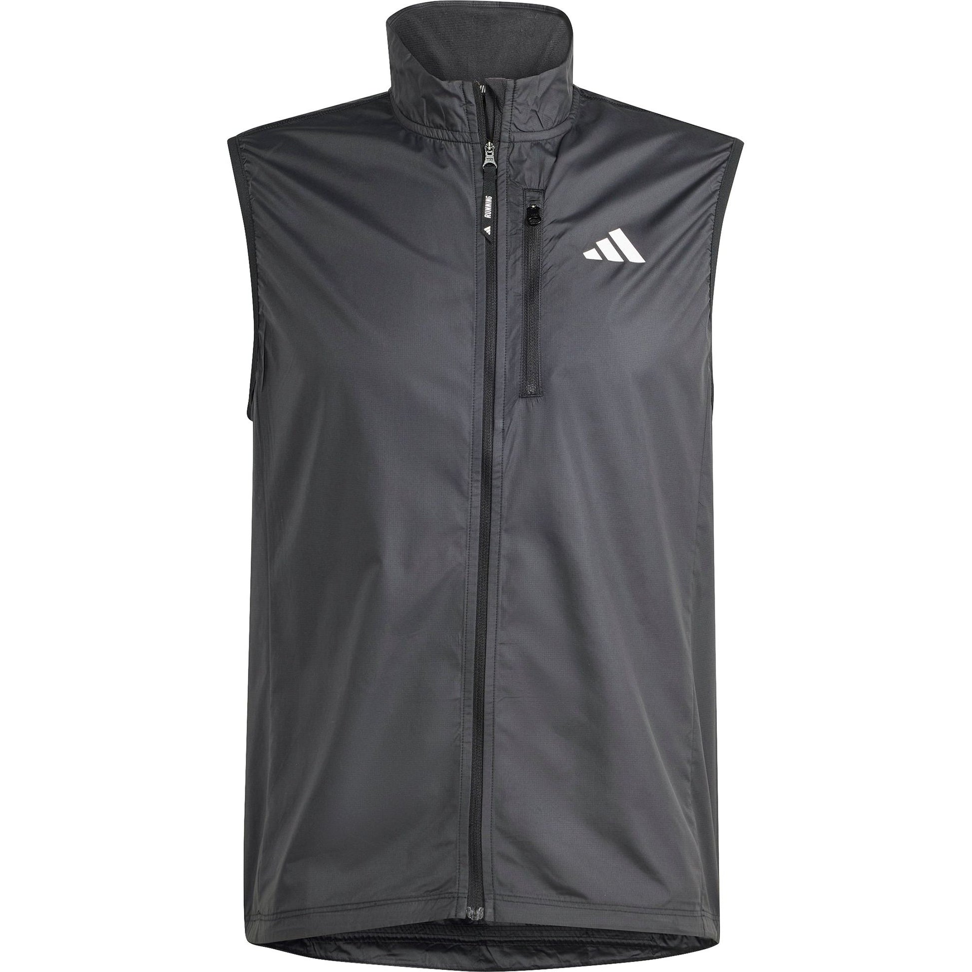 Block the wind without adding bulk in this adidas running vest. WIND.RDY technology resists chilly breezes and buffeting gusts to keep you comfortable mile after mile. Stay visible even after dark with reflective details that shine bright. A zip chest pocket gives you space for essentials, so you can focus on picking up the pace.