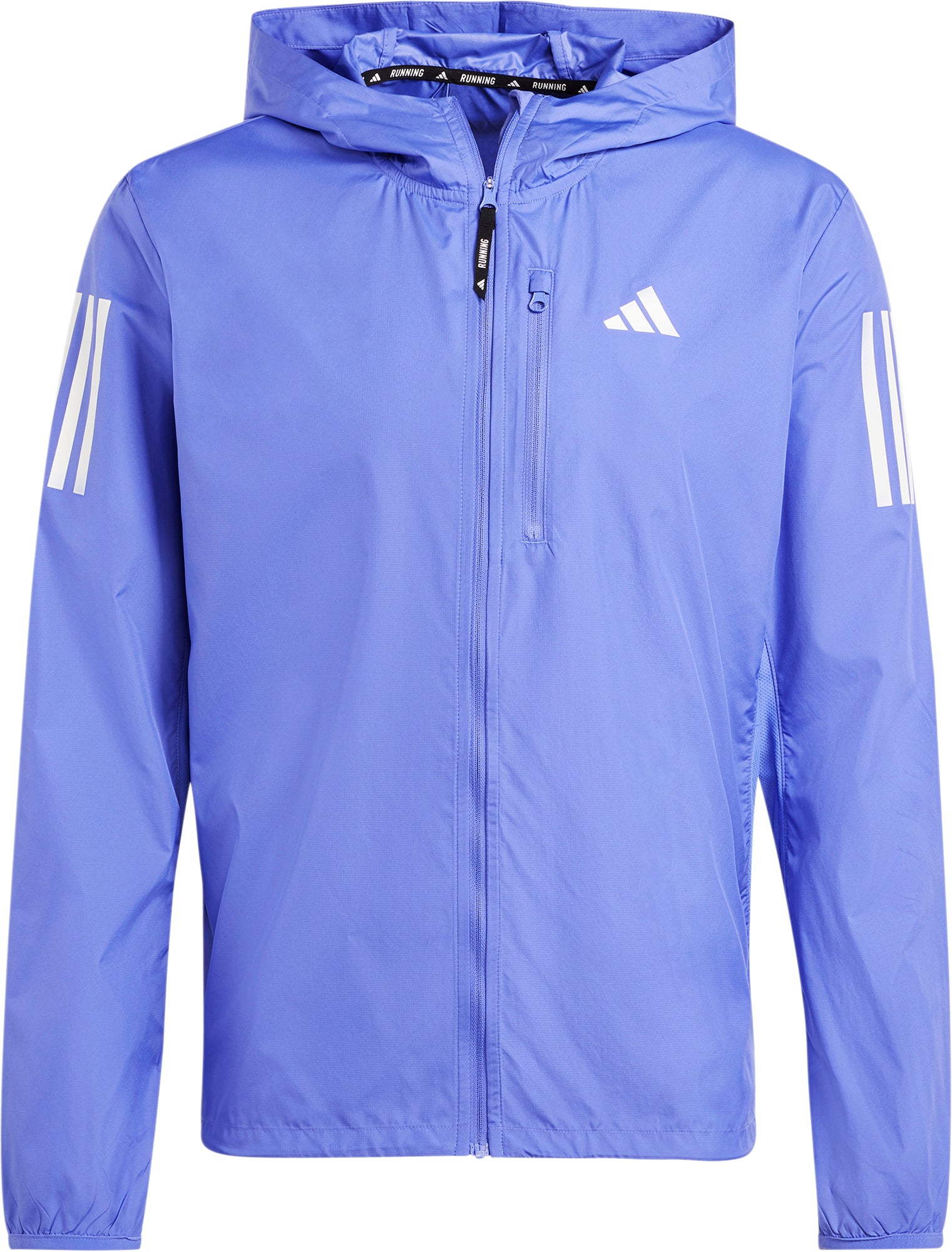 Windy conditions won't bother you a bit in this adidas running jacket. It's made with WIND.RDY technology to block the gusts so you can focus on your pace instead of the weather. An adjustable hood and hem let you customise the fit and seal out the chill. Lightweight ripstop and a slim fit stay out of your way as you knock out kilometres one by one. This product is made with 100% recycled materials. By reusing materials that have already been created, we help to reduce waste and our reliance on finite resources and reduce the footprint of the products we make.