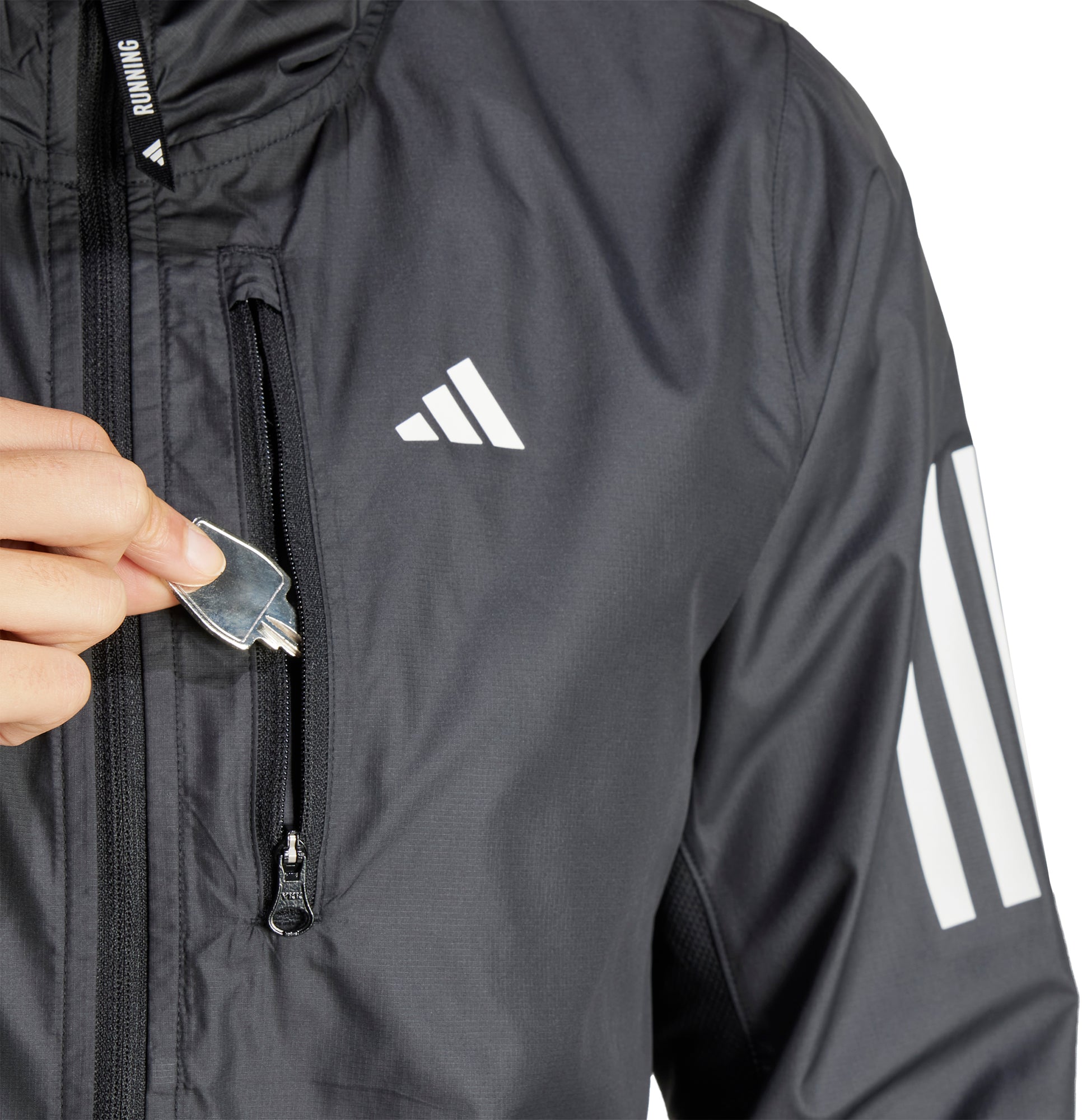 Own the elements in this lightweight running jacket. Wind won't slow you down thanks to adidas WIND.RDY technology that locks out the weather so you can focus on your run. An adjustable bungee cord at the hem lets you dial in the perfect fit. This product is made with at least 70% recycled materials. By reusing materials that have already been created, we help to reduce waste and our reliance on finite resources and reduce the footprint of the products we make.