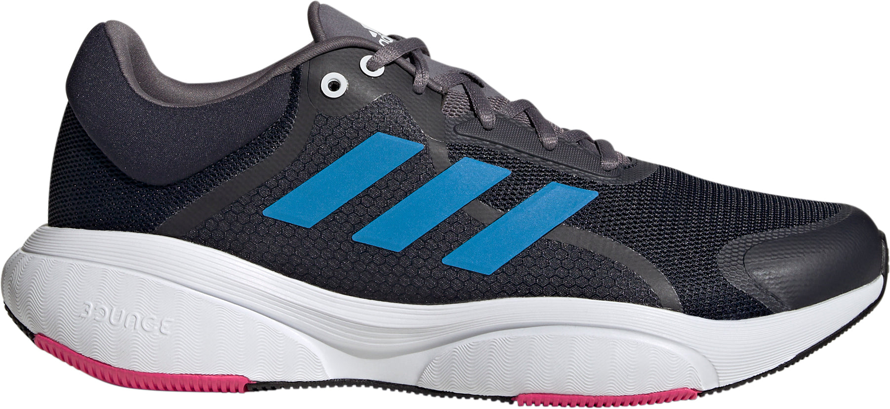Lace up with cushioning and responsiveness in every run. These adidas shoes are there for you with the comfort and support you need to hit the track or trail. The mesh upper is finished with a padded collar for a snug, comfortable fit. A Fitcounter moulded heel counter provides a natural fit. The Bounce midsole delivers cushioning and flexibility for a natural and responsive stride. Made with a series of recycled materials, this upper features at least 50% recycled content. This product represents just one of our solutions to help end plastic waste.
