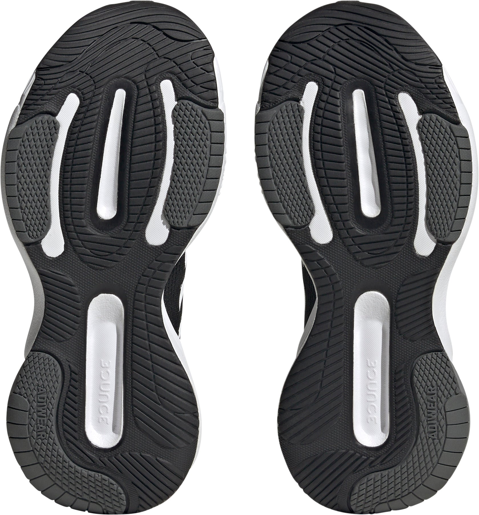 From the breathable mesh upper to the stylish, two-colour Bounce midsole, these juniors' adidas shoes feel springy and light. Stow them in your sports bag for team practice or wear them to meet up with friends. The grippy rubber outsole won't leave marks on the floor when you're nailing new dance moves.Made with a series of recycled materials, this upper features at least 50% recycled content. This product represents just one of adidas' solutions to help end plastic waste.