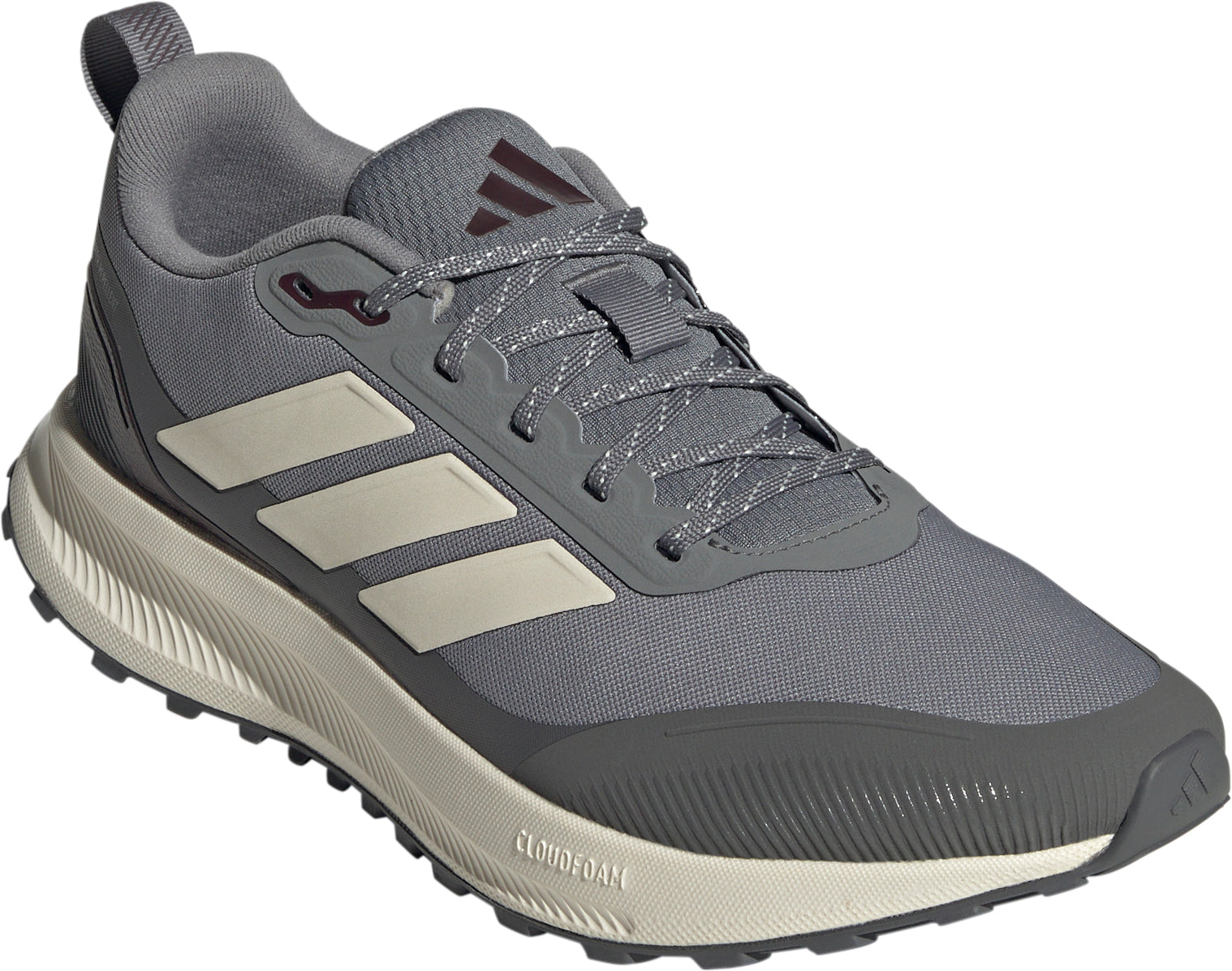 When your run takes you off the track, lace up these adidas running shoes. They're made for adventurous runs on park trails and uneven terrain with a water-repellent upper that sheds splashes of water and a lugged Adiwear outsole that grips as you go. Cloudfoam cushioning gives you all you the plush support you expect from a Runfalcon.