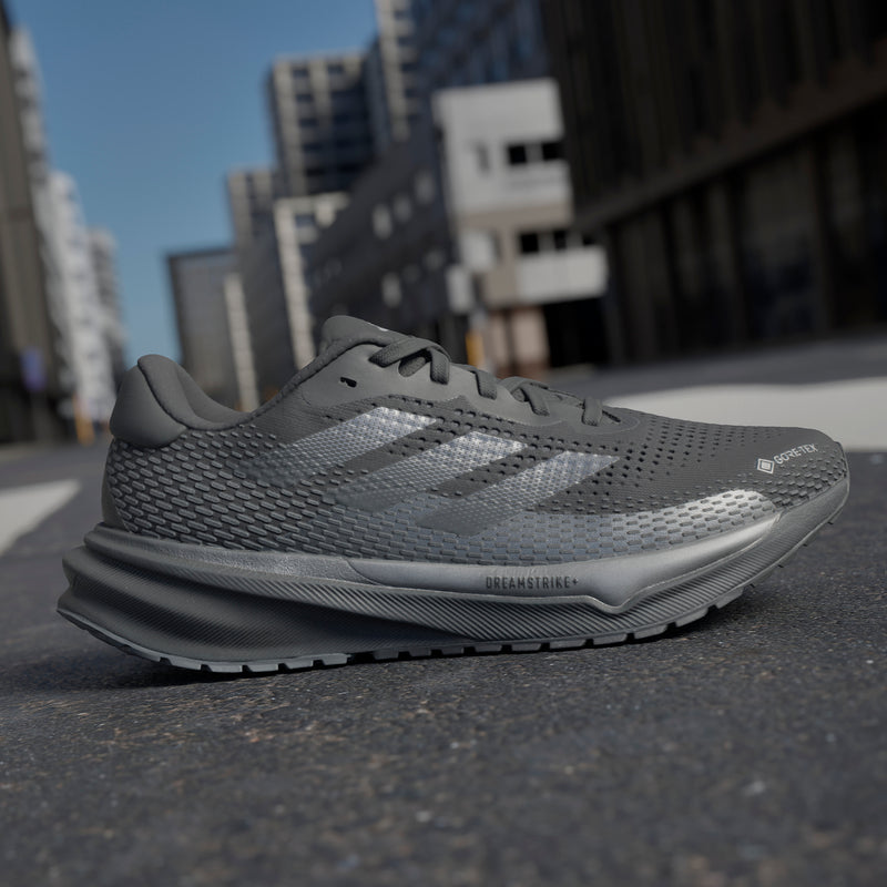 Don't let wet weather keep you from your training goals. These adidas running shoes come with a breathable GORE-TEX upper to keep your feet dry through summer rain showers and winter sleet. Dreamstrike+ cushioning softens every stride, delivering a smooth and springy ride from start to finish. The Continental™ Rubber outsole offers traction on wet and dry surfaces to keep you striding confidently in any conditions.