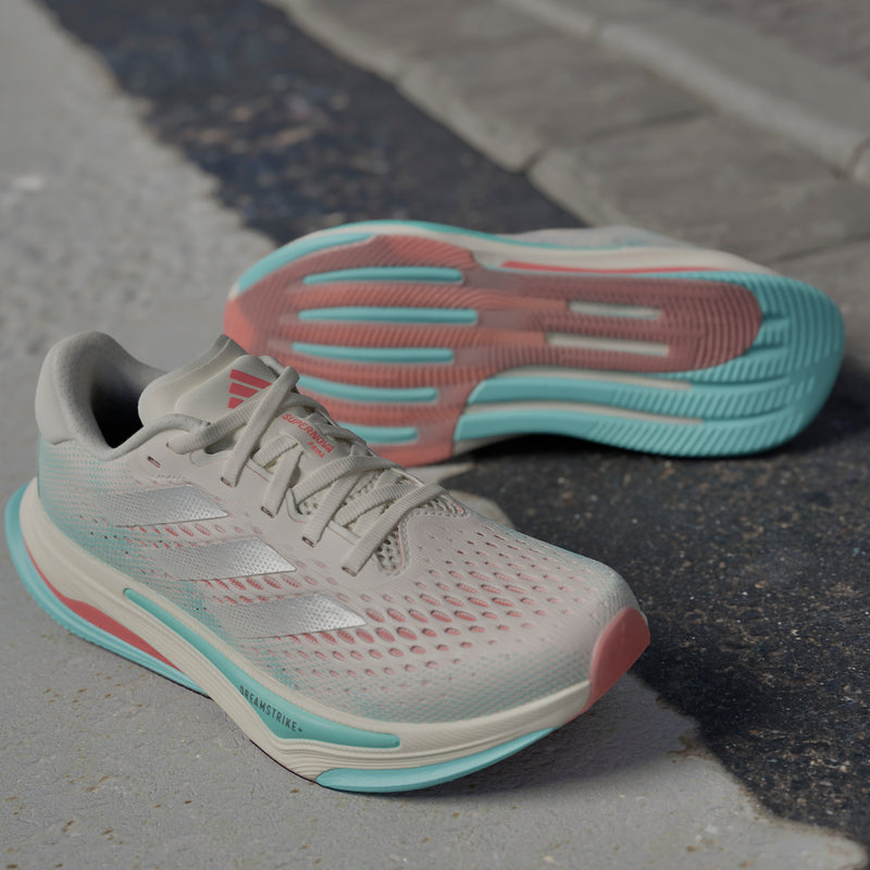 From first strides to first 5K, these adidas running shoes deliver comfort and confidence on the road to your personal running goals. Lightweight Dreamstrike+ cushioning absorbs impact with each step while a fine-tuned support system provides smooth transitions as you build endurance. The engineered mesh upper offers a cool, breezy feel from start to finish.