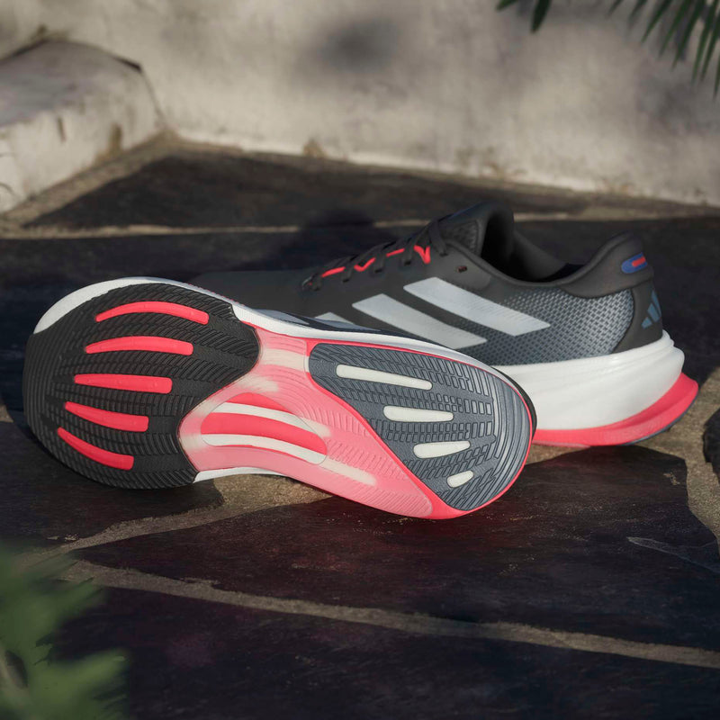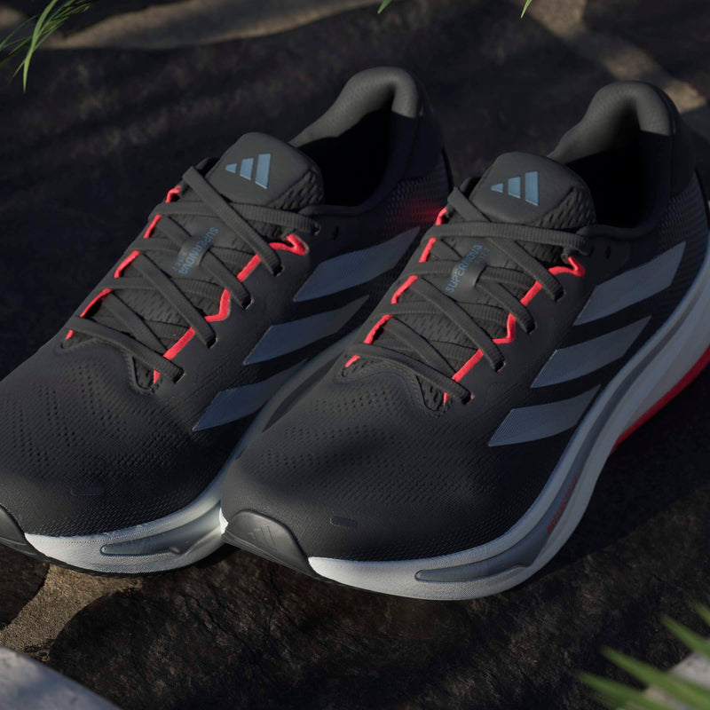 You got into running, and now there's a race on your calendar. Keep making progress in these adidas running shoes for daily runs. They ride on a Dreamstrike+ midsole, our lightweight super foam tuned for comfort. Support Rods help guide you from heel strike to toe off. Our new refined engineered sandwich mesh upper and premium heel construction is elegantly designed for optimized breathability for our most comfortable fit yet. Recognized by the American Podiatric Medical Association for promoting good foot health; this is Supernova Rise 2.