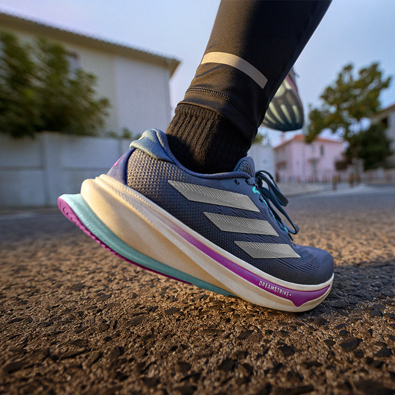 You got into running, and now there's a 5K on your calendar. Keep making progress in these adidas running shoes for daily runs. They ride on a Dreamstrike+ midsole, our lightweight Super Foam tuned for comfort. Support Rods help guide you from heel strike to toe off, and our new refined sandwich mesh upper is elegantly engineered for optimized breathability and our most flexible, comfortable fit yet.