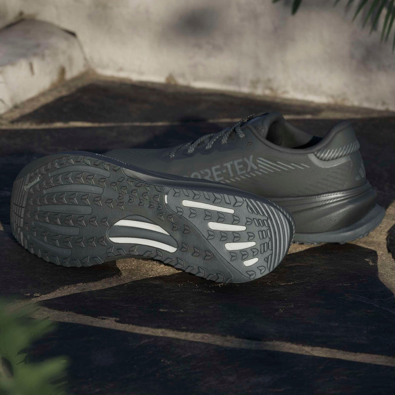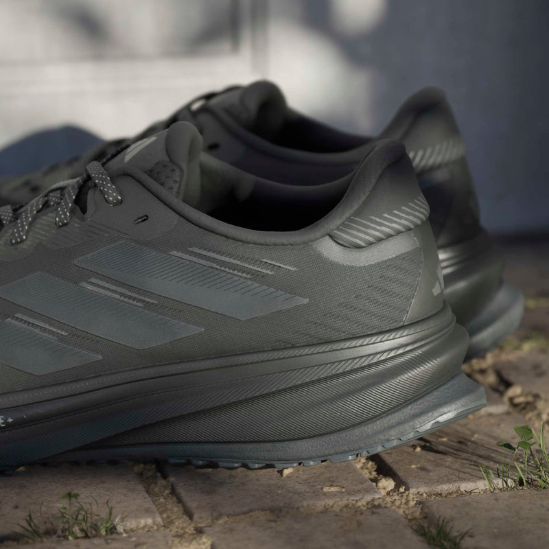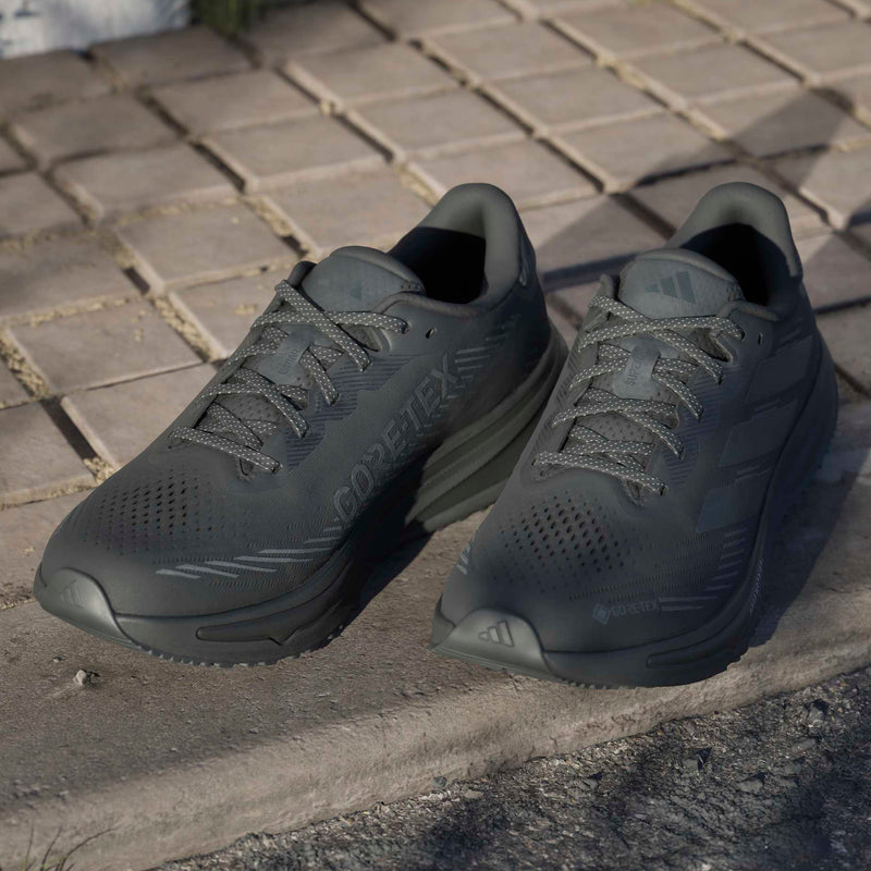 Rise to the challenge of mixed weather. These adidas Supernova Rise running shoes offer a smooth, responsive and waterproof ride for mixed weather. A waterproof, breathable, invisible-fit GORE-TEX® membrane seals out wet conditions while letting your feet breathe. The full-length Dreamstrike+ midsole with Support Rods is tuned for comfort, offering responsive cushioning and stability for a smooth ride. A Continental™ Rubber outsole provides secure grip across wet, slippery ground.