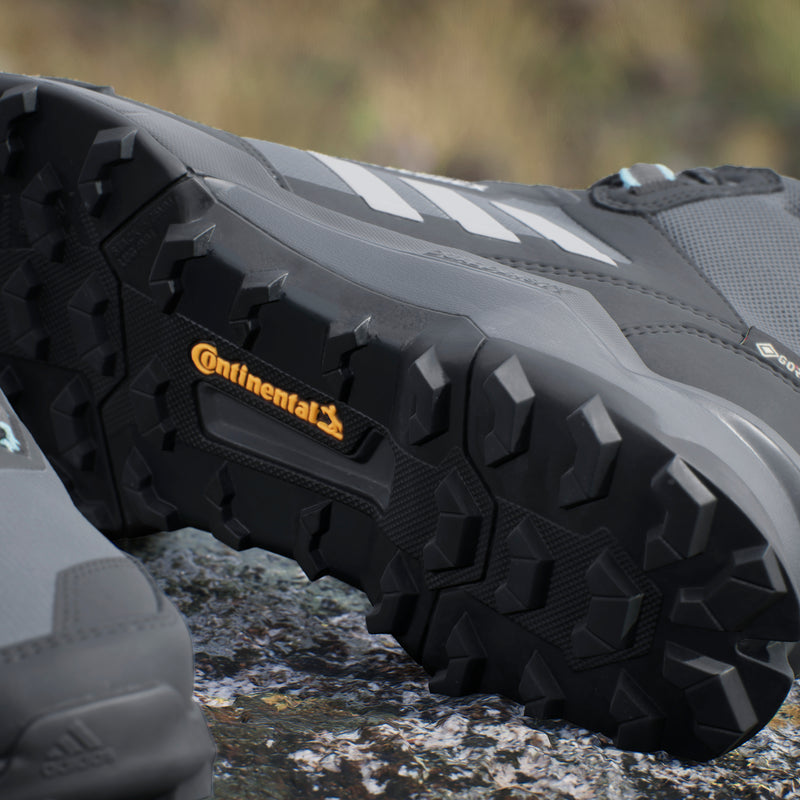 The outdoors is made for exploring, and these adidas waterproof Terrex hiking shoes are built to explore high and low, near and far. Their multi-sport design is light enough for day hikes and technical enough for alpine scrambles and via ferratas. They support your feet with a lightweight yet rugged and stable feel, so you can focus on your route. Waterproof, breathable GORE-TEX seals out water and mud while letting your feet breathe. A gusseted tongue and ankle-height cuff hug the foot and seal out dust and debris for running-shoe-inspired comfort. The all-conditions grip of Continental™ Rubber means you can move with confidence across rocky scree, wet roots and loose, dusty trails. Lace up, and get out there.