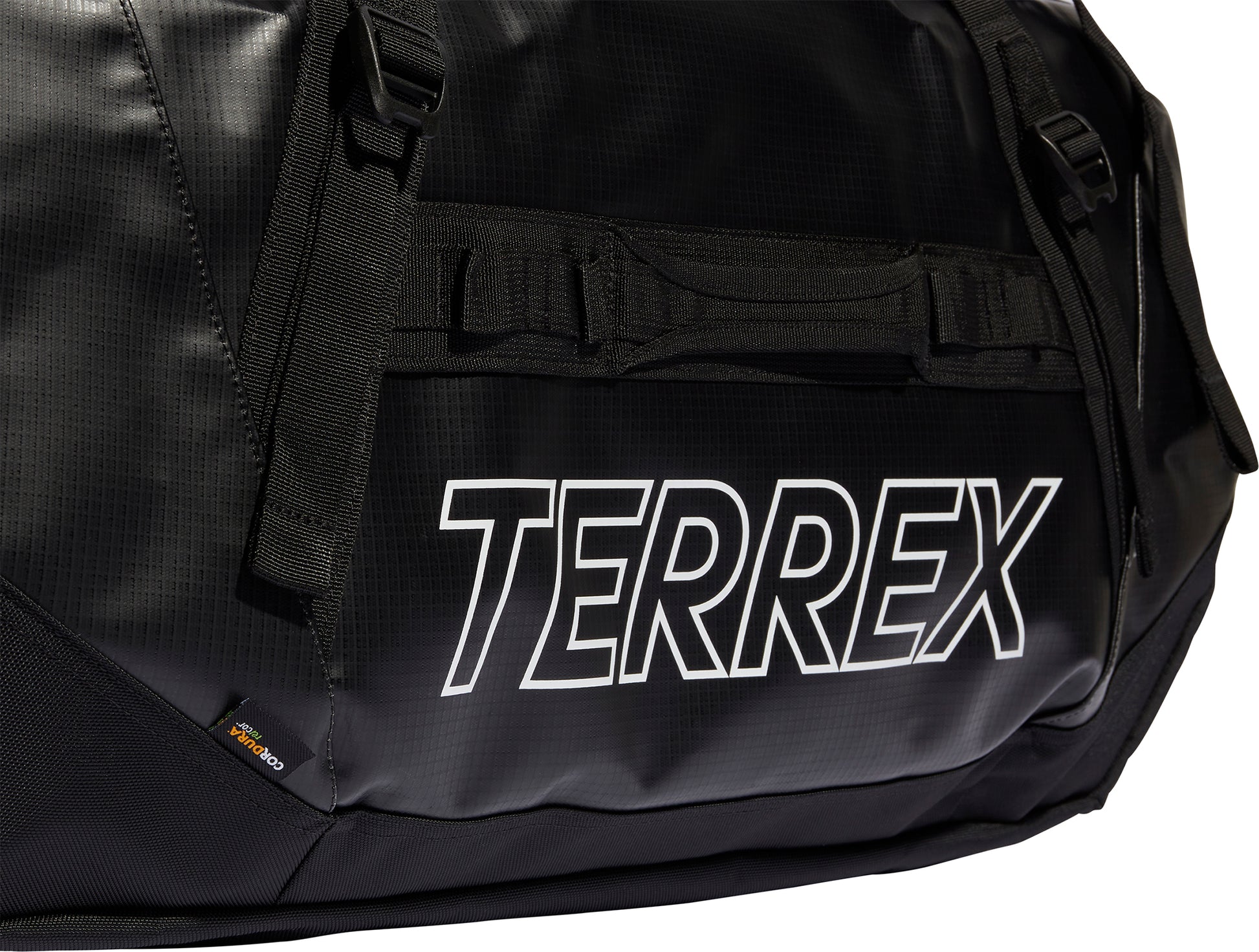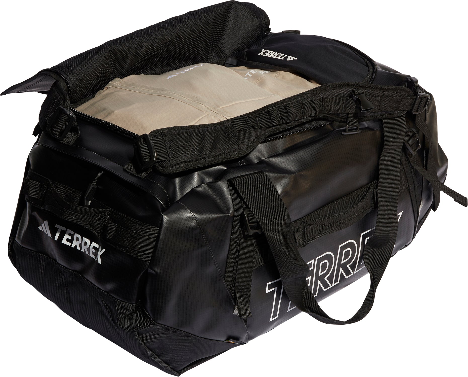 For long excursions away from home, pack everything you need into this large adidas duffel and hit the road. Built with polyester ripstop for durability outdoors, the large size lets you stow plenty of gear for wherever your adventure takes you. A water-repellent finish and RAIN.RDY build take on wet conditions, keeping your clothes, shoes and gear dry inside. Side and end handles make it easy to lug around. A small additional bag lets you stow this duffel when not in use and doubles as an organiser for small essentials. Go ahead and extend your trip — this bag can handle it.