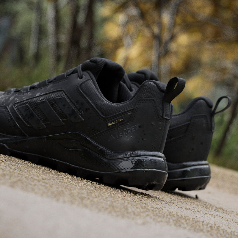 Gear up and get out. These adidas Terrex trail running shoes are your ticket to the trails, wet or dry. From cool, damp forest paths to rocky alpine routes, they support your effort with a balance of breathability, cushioned comfort and proven GORE-TEX waterproof coverage. The reinforced upper offers off-road durability and support. A grippy Traxion rubber outsole maintains a sure-footed feel in all terrain.