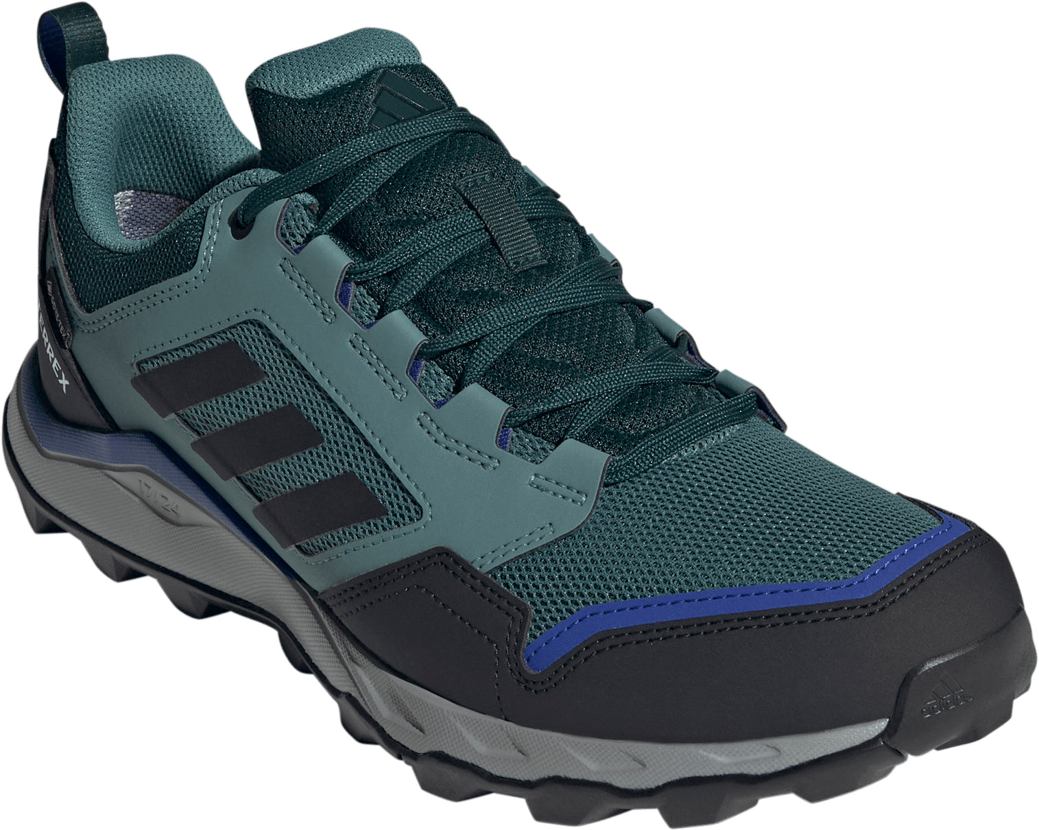 Gear up and get out. These adidas Terrex trail running shoes are your ticket to the trails, wet or dry. From cool, damp forest paths to rocky alpine routes, they support your effort with a balance of breathability, cushioned comfort and proven GORE-TEX waterproof coverage. The reinforced upper offers off-road durability and support. A grippy Traxion rubber outsole maintains a sure-footed feel in all terrain.