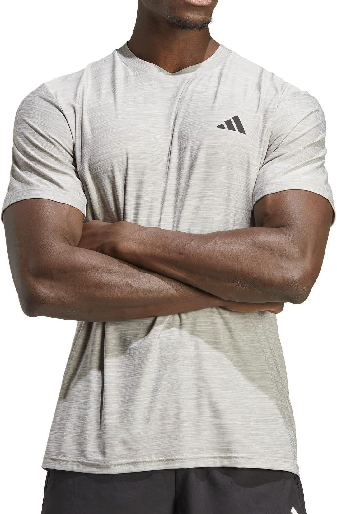 Lift, twist and stretch. Whatever the workout, this adidas training t-shirt gives you total freedom to move. The breathable fabric has plenty of flex, and it's cut for stay-put coverage through overhead movement. AEROREADY keeps you dry every step of the way.