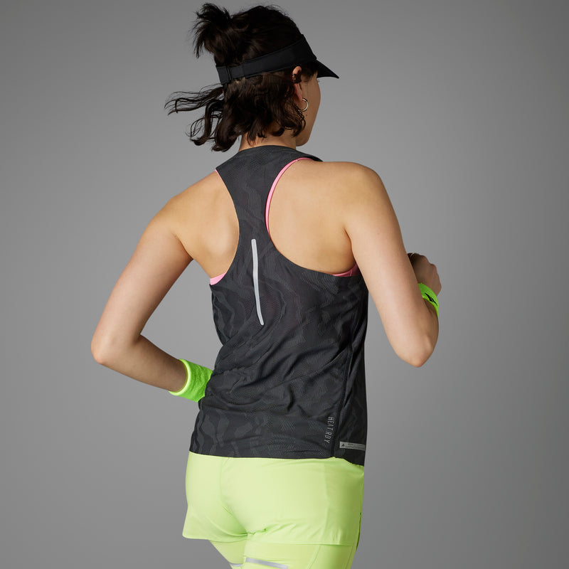 When you're gearing up for a personal best, pull on this adidas running tank top and set your sights on the finish. The engineered construction moves with you stride for stride and features HEAT.RDY technology to keep you cool at any pace. The round neckline offers a comfy, distraction-free fit, and all-around reflectivity shines in low-light conditions.