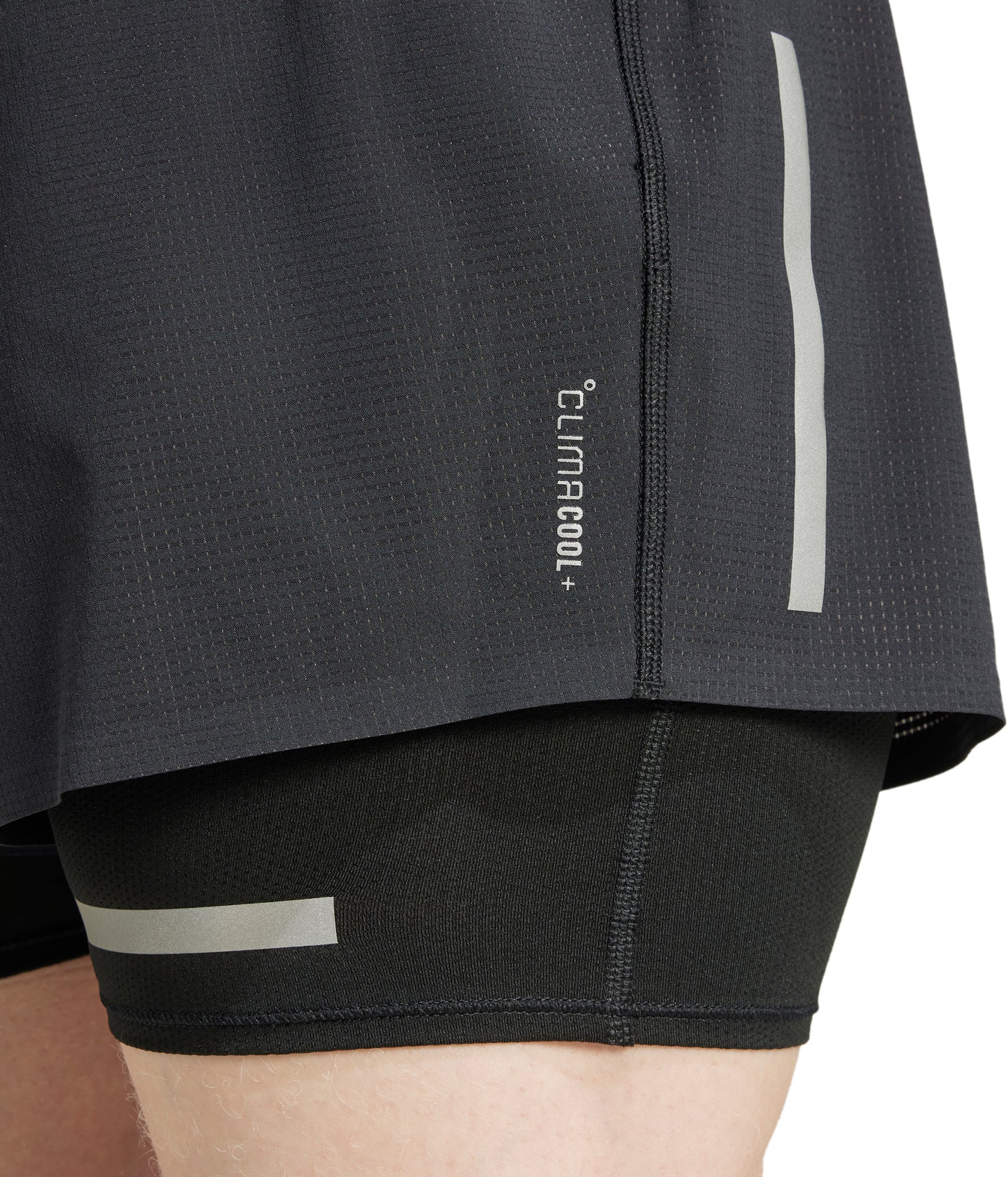 Two-in-one running shorts with CLIMACOOL+ for advanced performance.