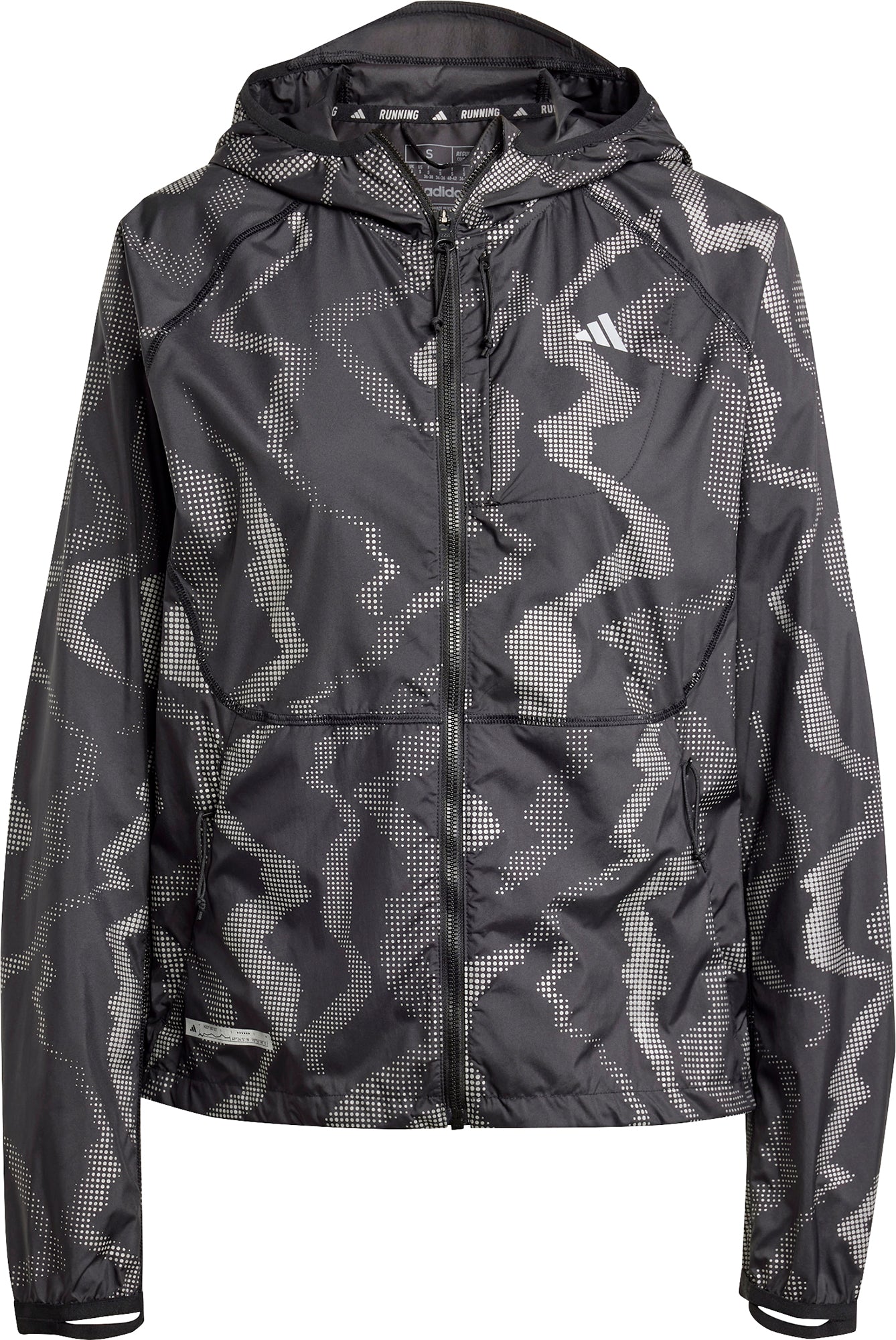 Take on windy runs with confidence. This adidas running jacket powers you through cool, blustery weather in comfort thanks to WIND.RDY technology. The adjustable hood and hem let you customise the fit, and elastic cuffs seal out the chill. Stash essentials in the zip pockets for easy access on the go. This product is made with 100% recycled materials. By reusing materials that have already been created, we help to reduce waste and our reliance on finite resources and reduce the footprint of the products we make.