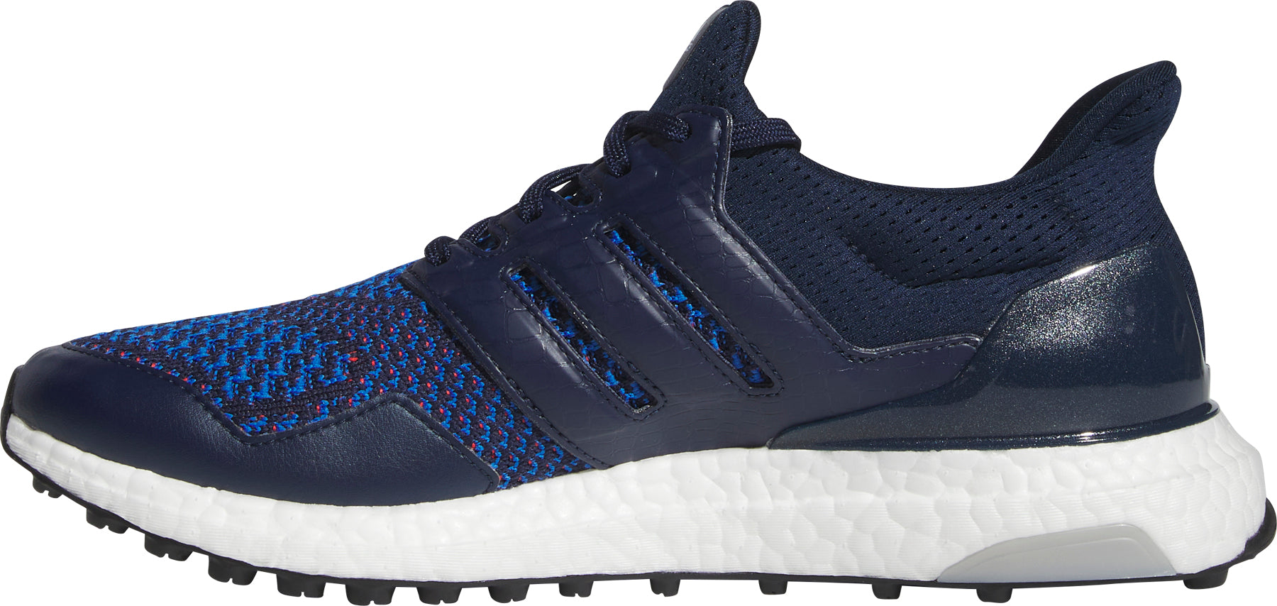 Be ready for a long day at the golf course and beyond. These Ultraboost golf shoes have an adidas PRIMEKNIT upper that hugs your feet, moving with you as you line up your next shot or walk up those steep hills. A BOOST midsole cushions every step, returning energy after a long-distance drive and giving you a plush feel while you hang out with friends after the shots are done. A spikeless outsole lets you go from the green to the clubhouse without having to change your footwear.