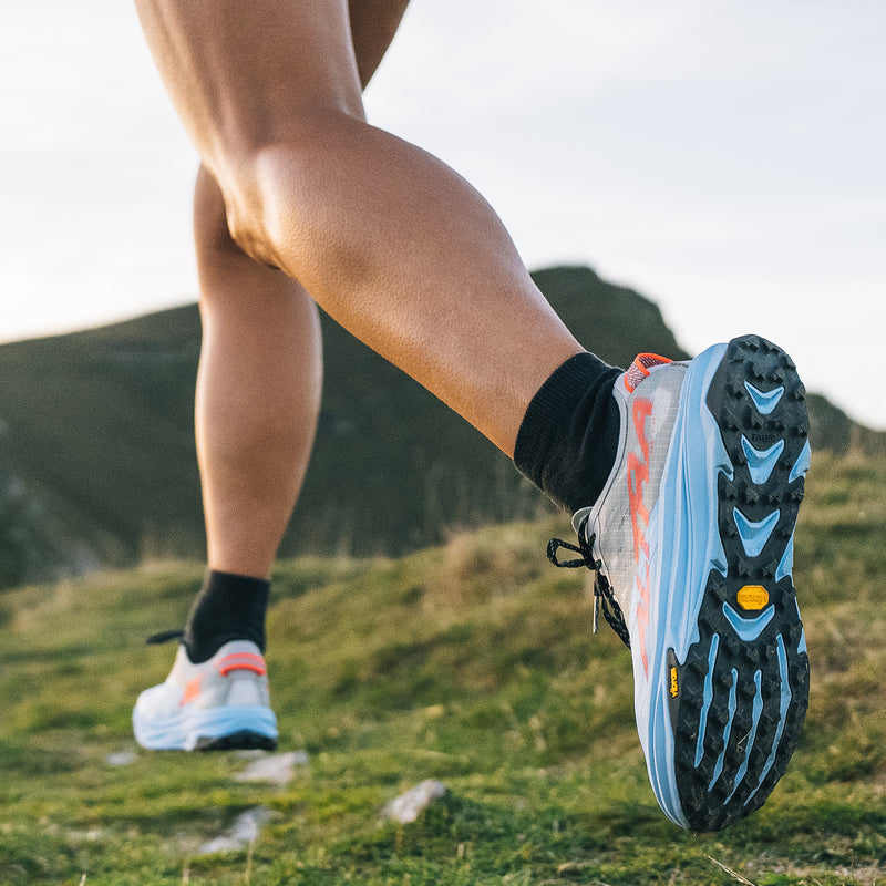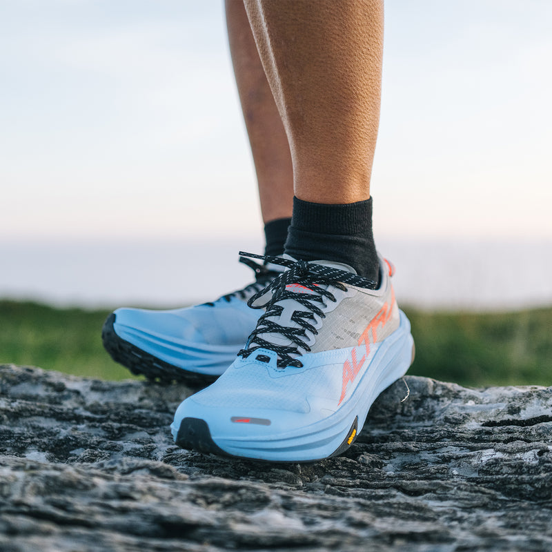 Say Bonjour to our speediest trail shoe to date! With a full-length carbon fiber plate, upgraded midsole, and sticky outsole, it’s ready for fast technical terrain. Toe the starting line of your next trail ultra or set out on all-day up and downs with confidence and speed. It’s got many of the original Mont Blanc features, but we added a full-length Carbitex™ Monoflex carbon plate for extra propulsion, underfoot protection, and stability on all terrain. Crafted with a lightweight and responsive midsole with rim and core construction. Snag some comfort with Altra EGO™ MAX in the rim and get enhanced race-day performance with Altra EGO™ PRO in the core. With Vibram® Litebase to reduce outsole weight and Vibram® Megagrip for unparalleled grip on both wet and dry surfaces, you’ve got help sticking it to any trail. Featuring a roomy toe box with plenty of space for your toes to move freely, a secure midfoot, and zero drop, so you can move naturally. Who said road shoes get all the speed? Send it on the trail with the Mont Blanc Carbon!